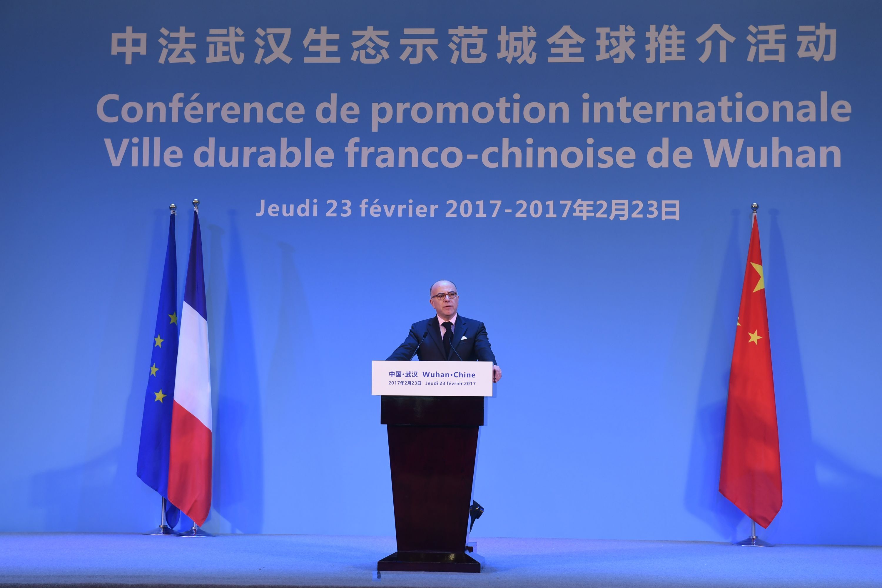 2017年2月,时任法国总理卡泽纳夫在中法武汉生态示范城全球推介活动上发表主题演讲。