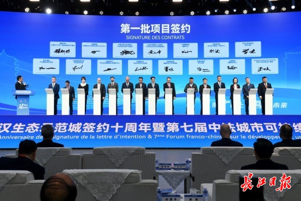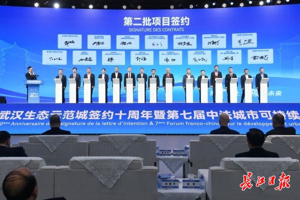 长江日报大武汉客户端3月20日讯(记者张衡)20日,在中法武汉生态示范城签约十周年暨第七届中法城市可持续发展论坛上,现场共签约项目58个,签约金额606亿元,主要涉及中法生态城锚定的高端服务、数字经济、生命健康三大主导产业。站在中法武汉生态示范城(以下简称“中法生态城”)下一个十年的起跑点,中外企业纷纷抢滩登陆,布局落子。