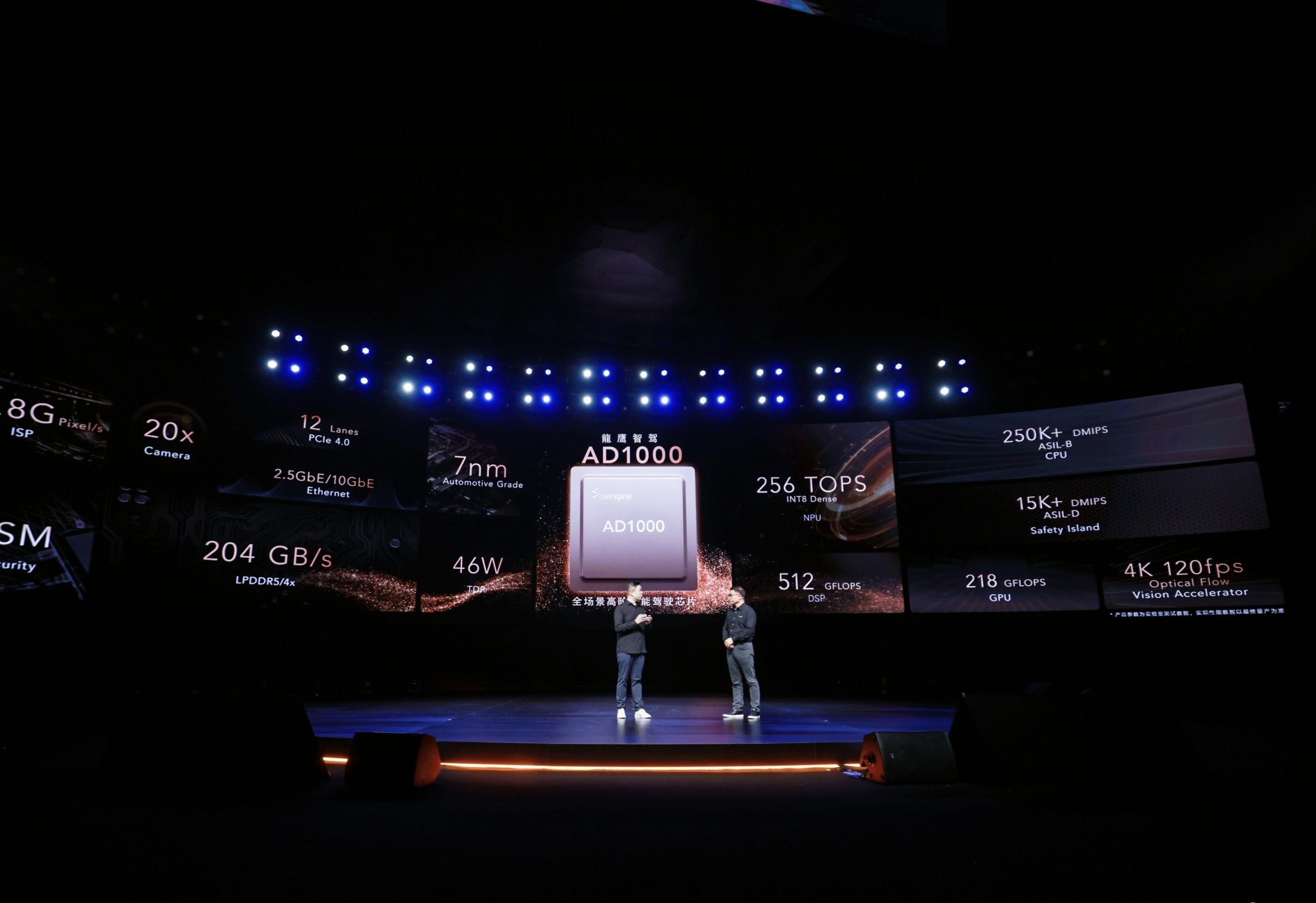 沈子瑜与汪凯共同公布龙鹰智驾AD1000芯片。通讯员供图