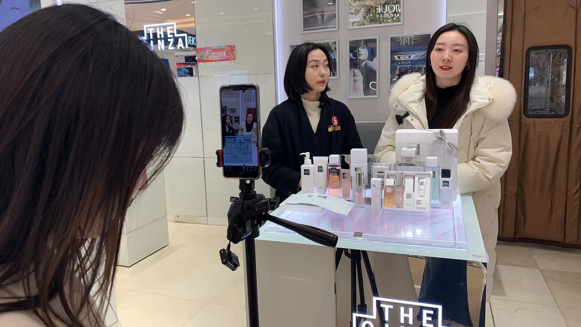 将直播间切入大牌化妆品柜台,刺激消费。 通讯员汪媛 摄
