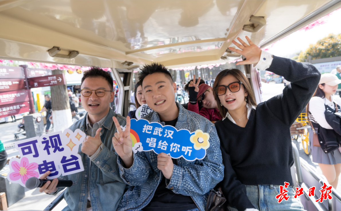 三月春盛,湖光潋滟,绿道蜿蜒,春和景明,欢歌笑语唱着武汉人的春日慢生活。20日15时,满载歌者的东湖绿道“樱花限定”观光车从湖光序曲始发,沿着东湖绿道一路歌唱,与沿线漫游的市民游客来了一场浪漫邂逅。