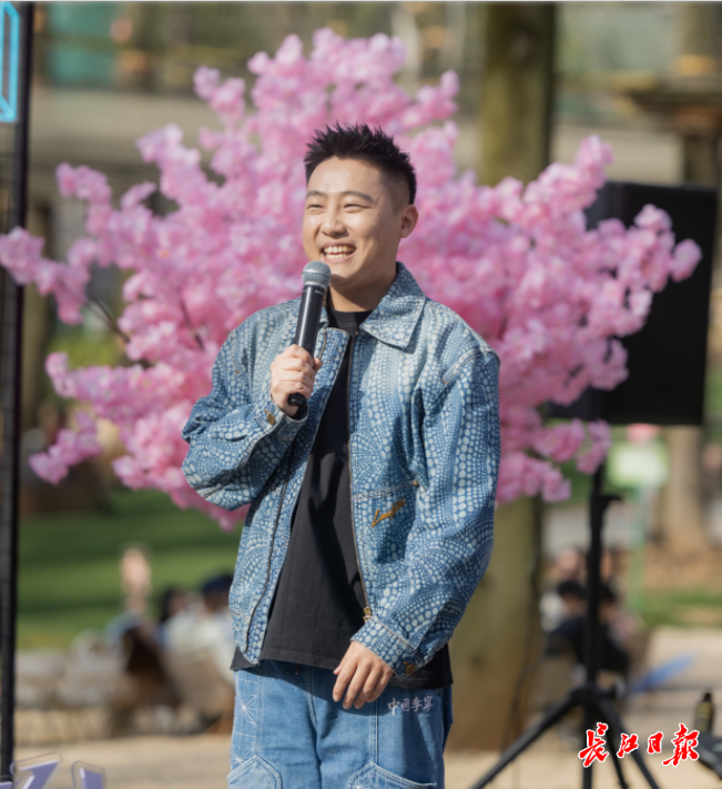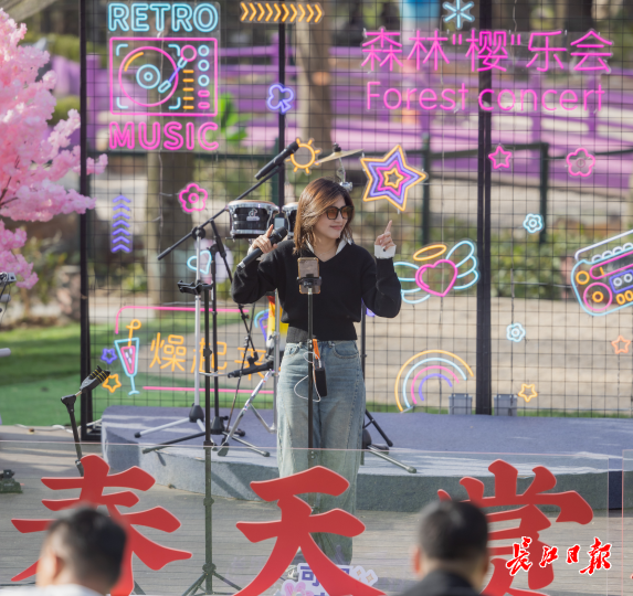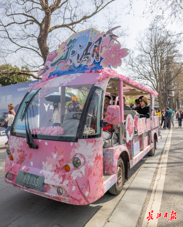 一到春季,浪漫粉将碧水点缀得温婉。流淌着春日音符的音乐直播车一路“唱”过湖光序曲、湖心归沐、磨山挹翠,直达终点东湖樱花园。