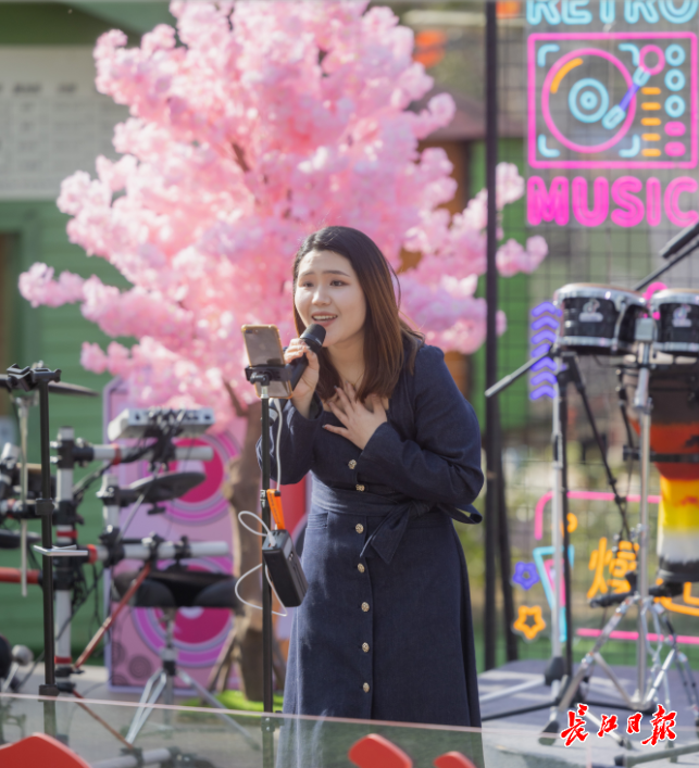 一首首带着春色和花香的歌声伴着春日湖风飘来。“春暖的花开带走冬天的感伤,微风吹来浪漫的气息……”网络收获超百万粉丝的歌手王添翼与曾获2016超级女声湖北赛区冠军、全国百强的歌手唐菲开场带来《今天你要嫁给我》,绿道沿线的空气瞬间甜蜜起来,绿道两侧的游客也跟着哼唱起来,热情与歌手们挥手互动。