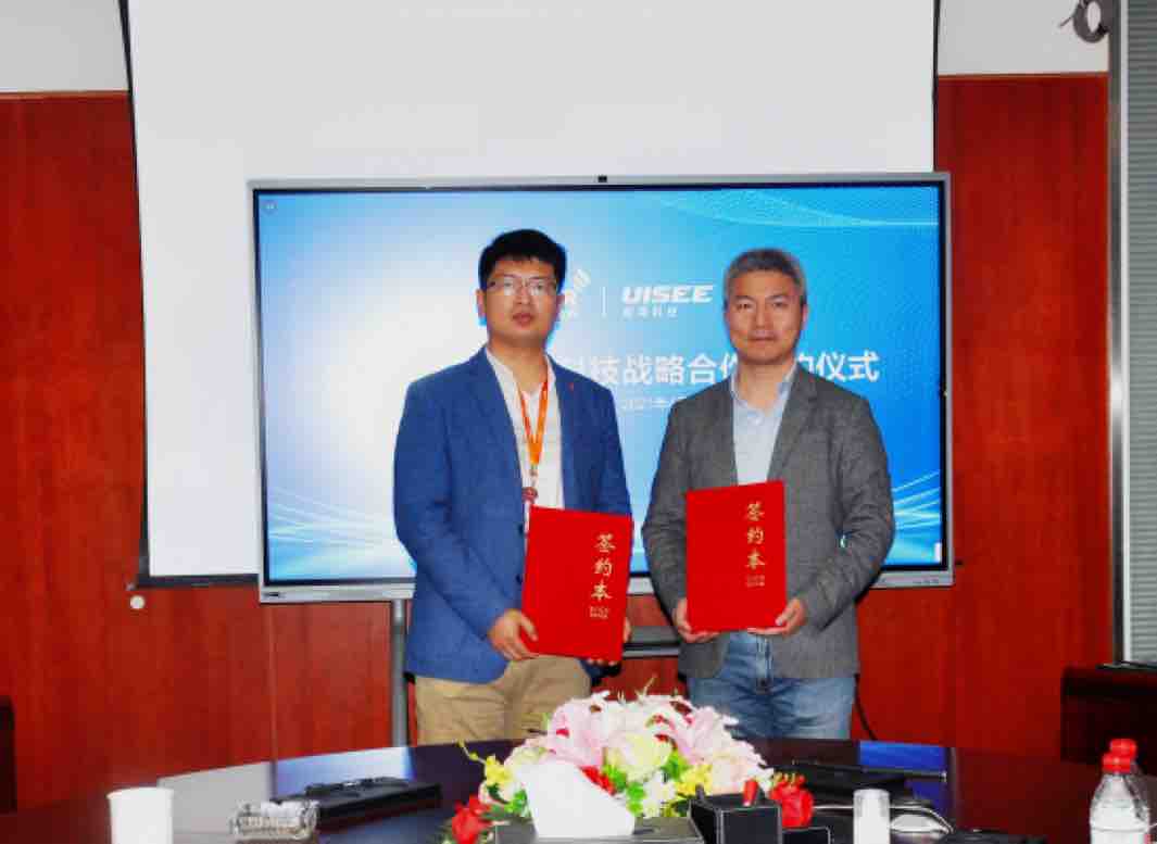 ⽴得空间数据⽣产中⼼总经理任罗伟和驭势科技联合创始⼈、董事⻓兼 CEO 吴⽢沙签约。