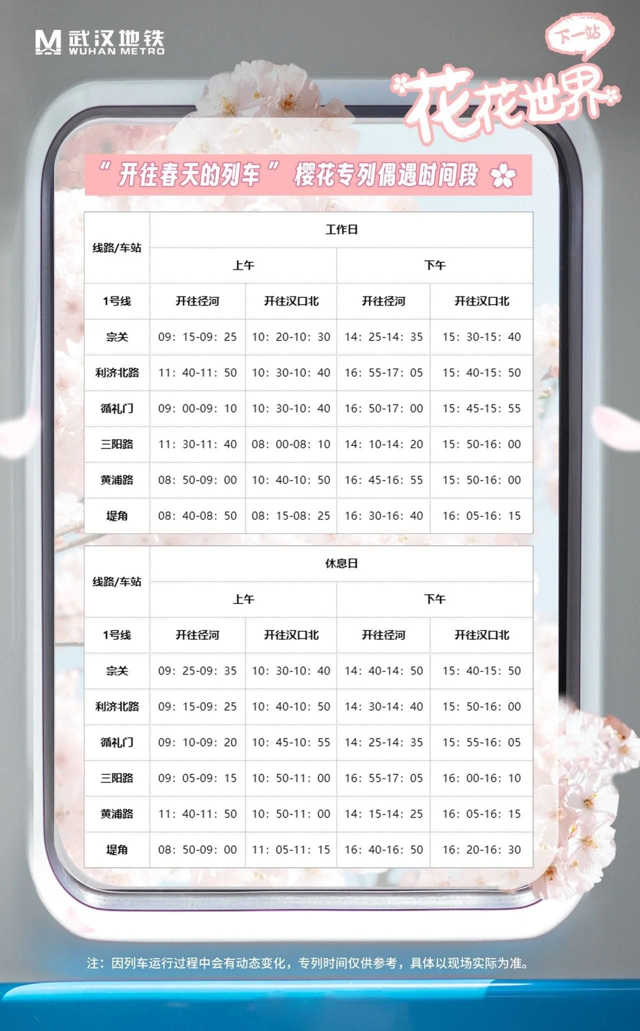 3月19日清晨,一辆满载着“春天氛围”的列车缓缓驶入武汉地铁1号线黄浦路站,列车车身涂装樱花图案,宛若一束盛放的樱花穿行城市之中。