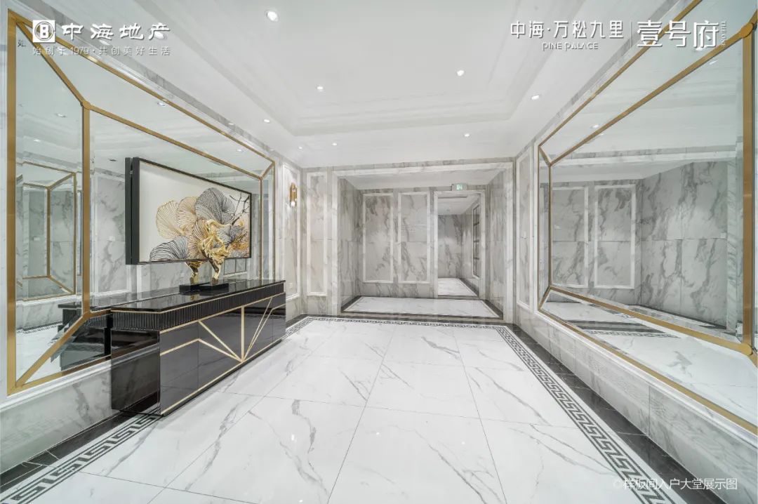 走进中海·万松九里,从车库大堂开始,整齐排列的管线,就能看出中海的精工品质。考虑到高端住宅的业主大多是从地下层直接入户,项目车库大堂装修和设计,与地面层品质一致。