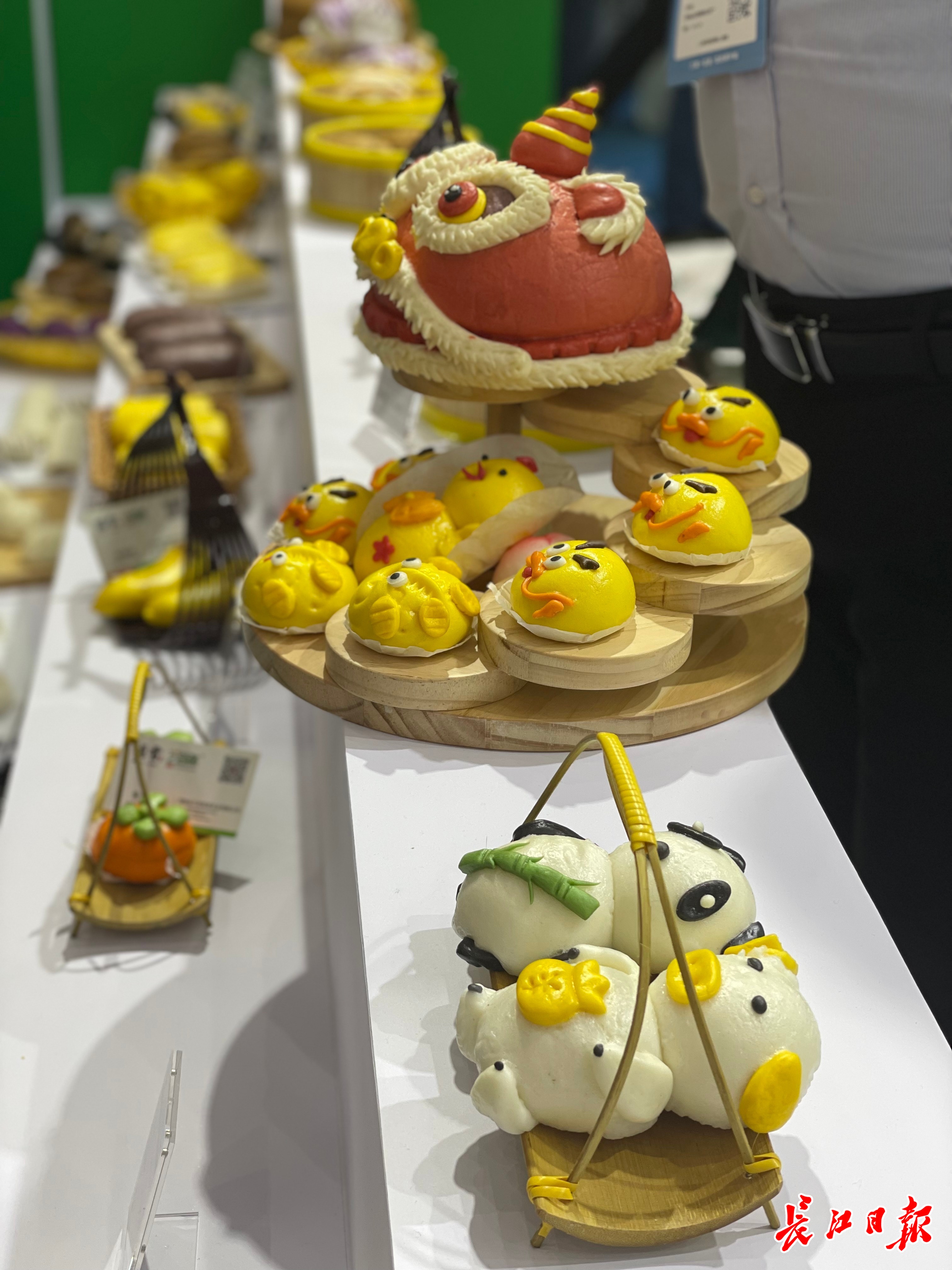 除了深海黄鱼这种高端食材,参展商也在普通食材上不断创新。来自河南云阳的“艺面之缘”,将寿桃、吉祥龙、熊猫以及各种卡通造型,运用到普通的包子和发糕上。其负责人表示,因为造型可爱,很受幼儿园和早餐店欢迎,“我们一个月左右便推出新品,已经累积了近两百个品牌,还可以根据顾客需求进行定制。”