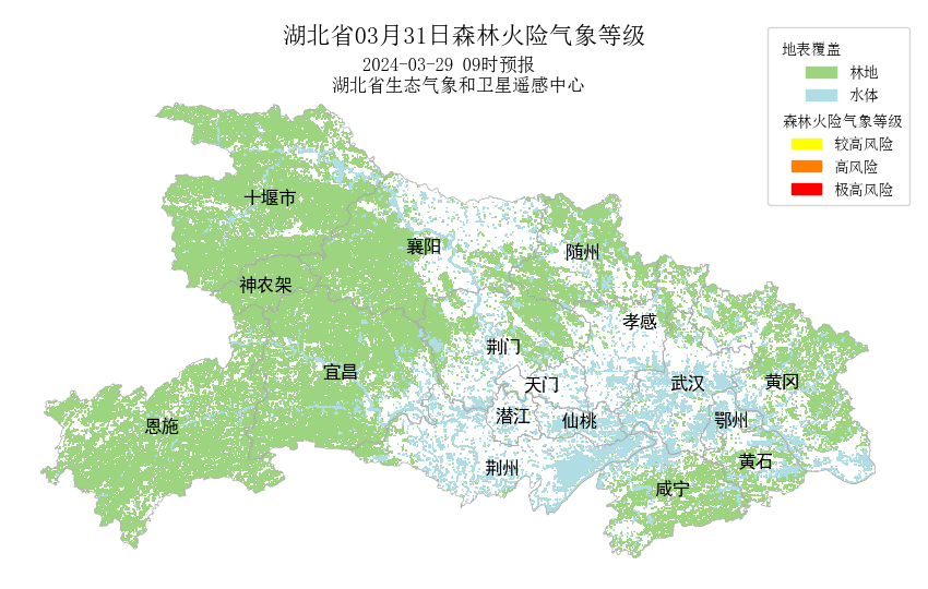 30日鄂西北局部森林火险气象等级为较高风险,31日全省森林火险气象等级较低。由于正值清明节前夕,人为活动和野外用火增加,仍需密切关注森林防火。