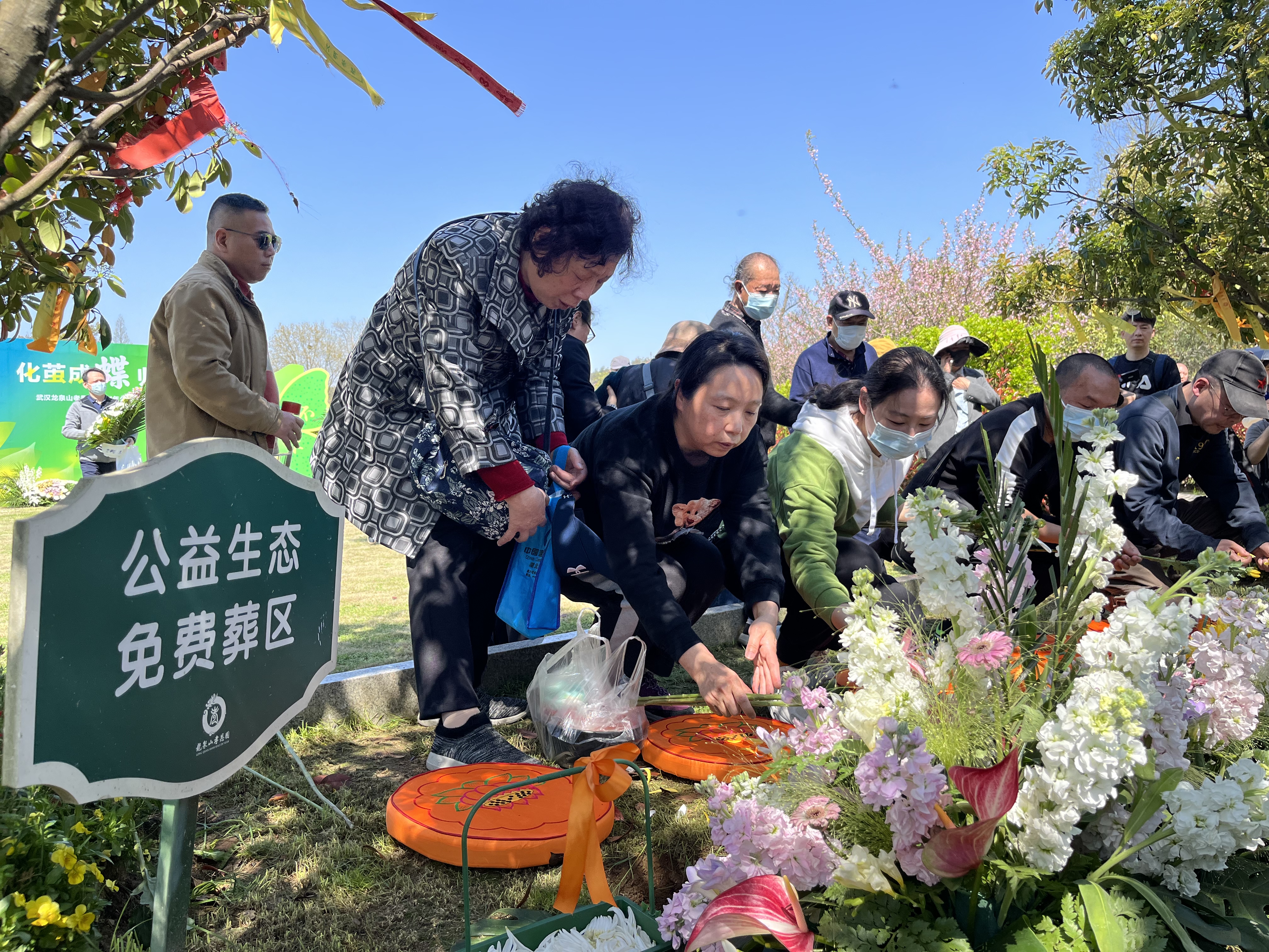 长江日报大武汉客户端3月29日讯 3月29日,一场以“化茧为蝶、归于自然”为主题的免费生态环保葬仪式在武汉龙泉山孝恩园举行,逝者家属及光谷第三十二小学师生一行近百人用诗歌、音乐、祝福语送别5位逝者,他们将长眠在孝恩园的绿荫花海中。