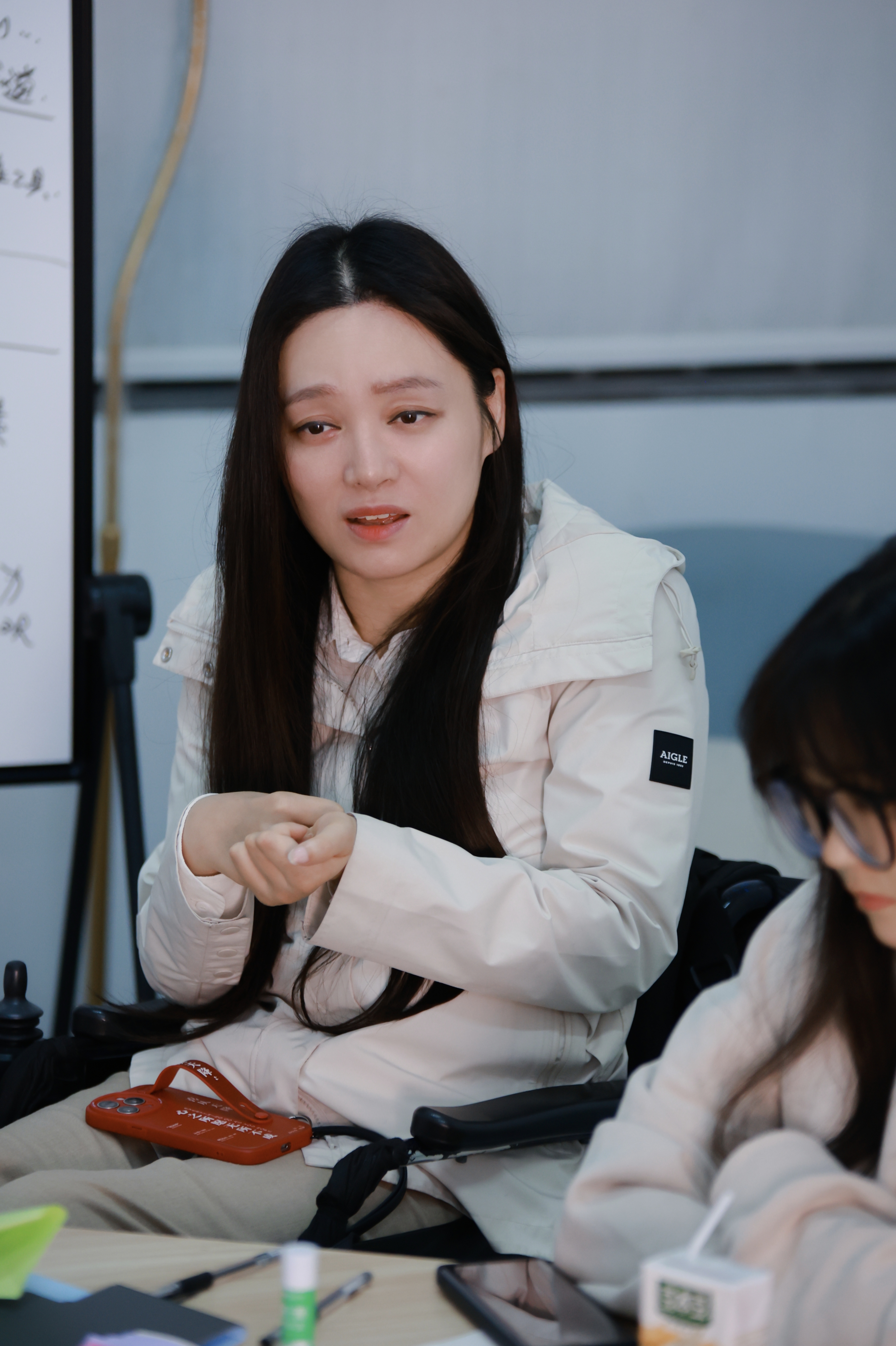 话题讨论中,董明积极参与同学们的分享交流,用共情的态度、睿智的眼光和幽默的话语,让同学们在轻松愉悦的氛围里感到被关注、被理解和被支持。她结合自身实际,分享了克服严重躯体疾病,重燃生命斗志,实现人生价值的曲折心路历程,引人深思、令人鼓舞。董明鼓励同学们:“人生就如同折纸,有难有易,慢慢去折,慢慢去体会,慢慢成为更好的自己,考验的背后可能蕴藏着意想不到的惊喜。”