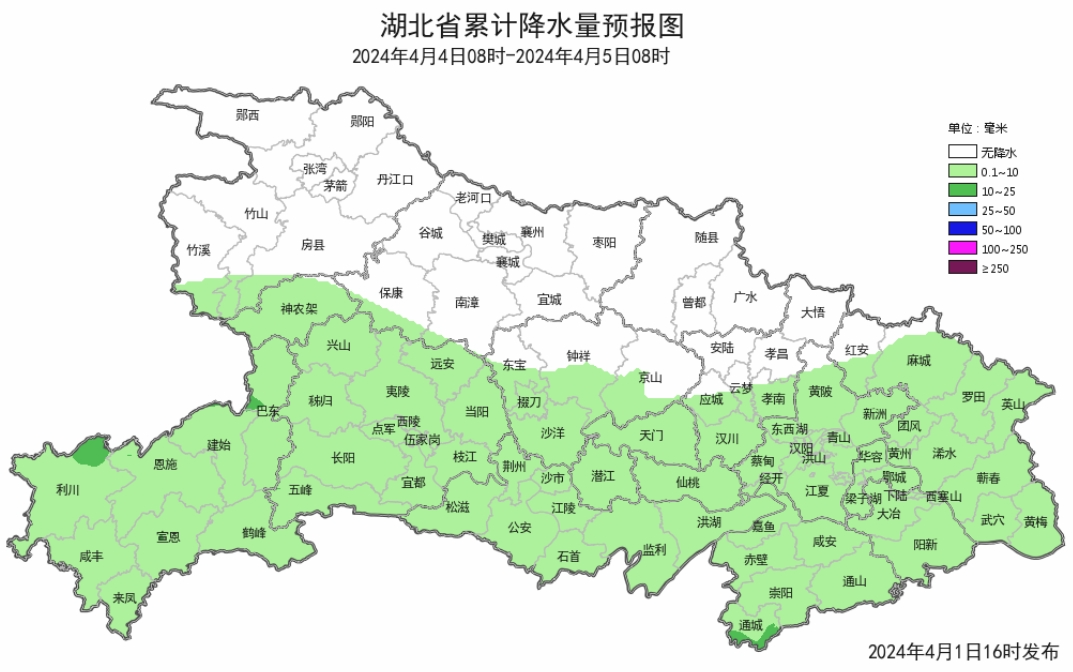 预报来源:武汉中心气象台2024年4月1日16时预报