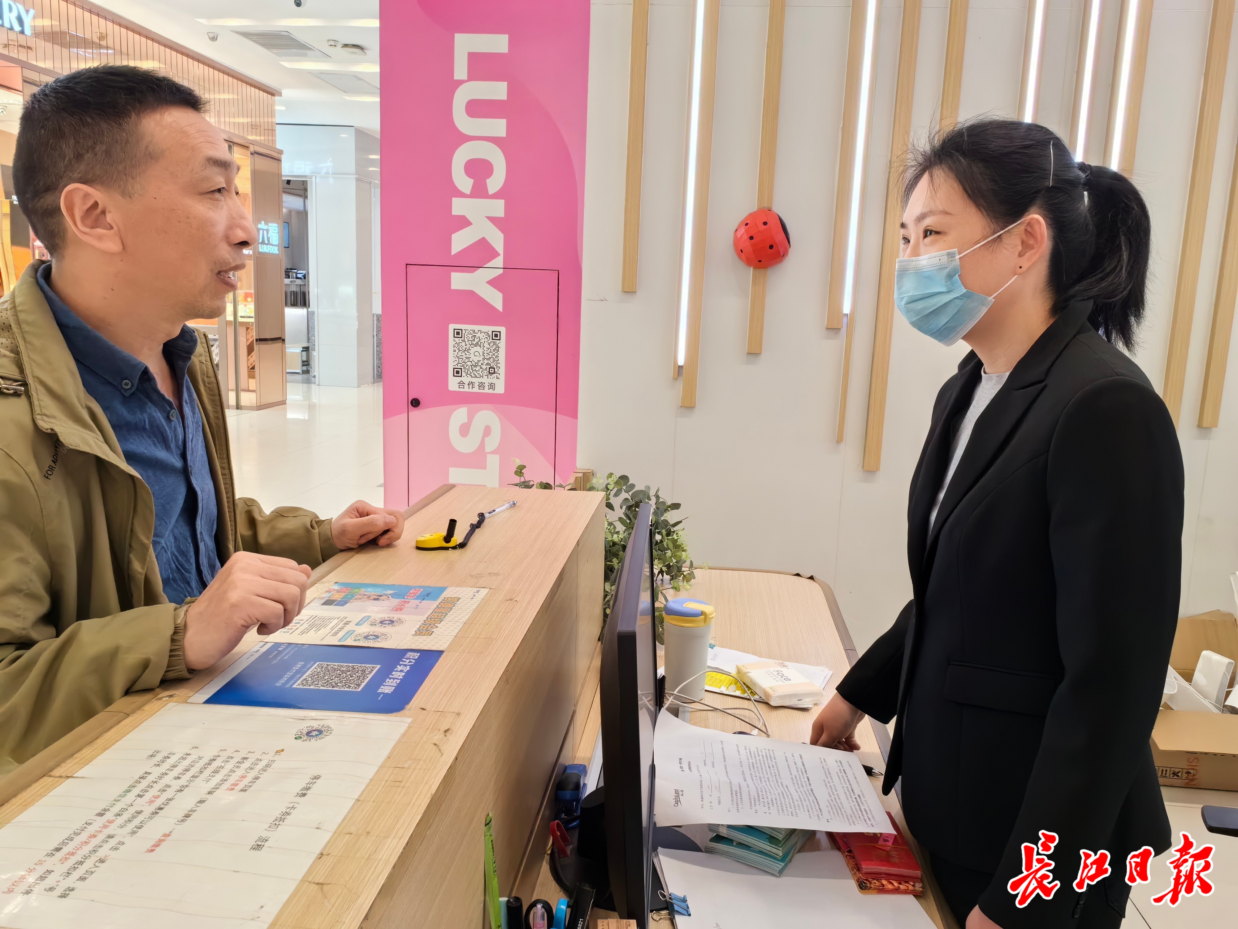 市民万先生在商场服务台咨询夜间优惠共享停车月卡办理。 记者邓小龙 摄
