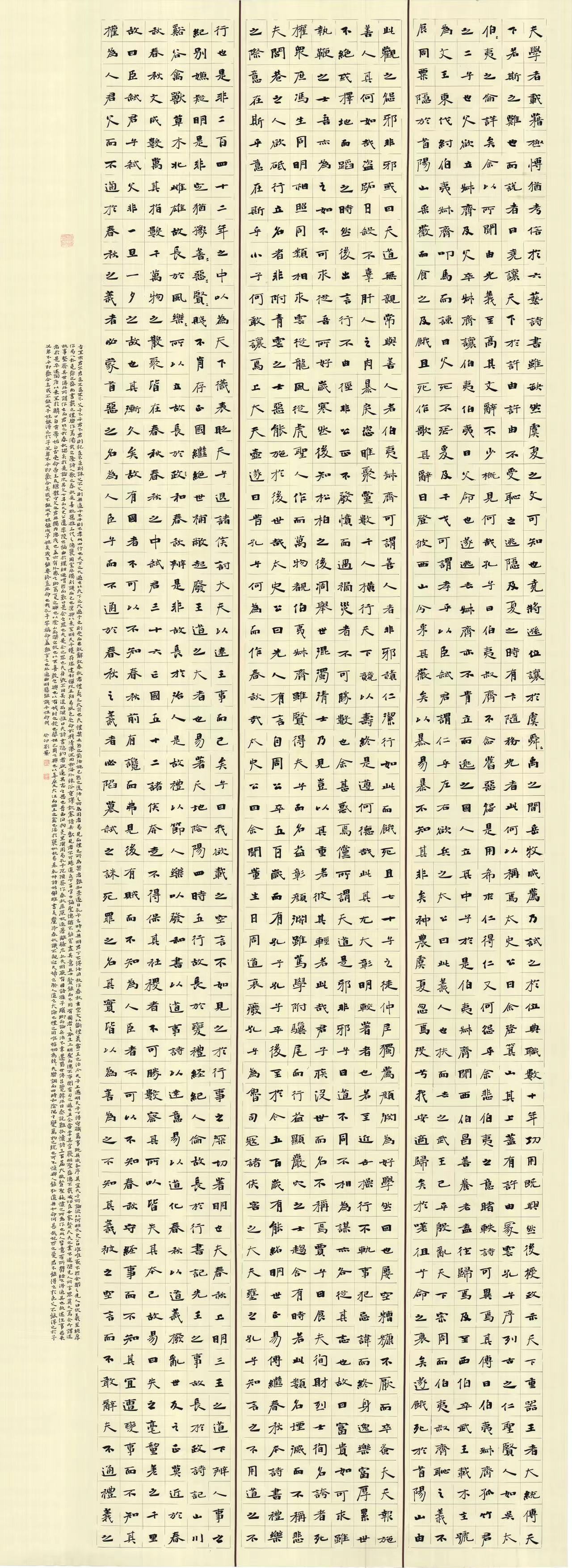 据悉,本届展览设置三级评审体系,经过评委会严格评审,共评出入展作品965件,其中篆书88件,隶书134件,楷书215件,行书237件,草书182件,篆刻76件,刻字33件。刘艺同学入围的是楷书作品《古文观止选篇》。
