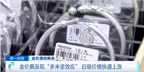 上海某珠宝广场负责人 邵勇江:这段时间以来,我们广场的客流比之前有明显的增长,增长幅度在20%至30%左右,消费者对银饰品的兴趣程度在不断提升。