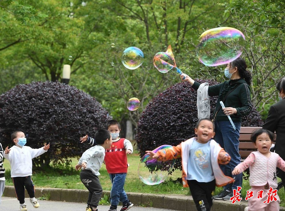 阳光明媚,市民在武汉市洪山区关山公园游玩。长江日报记者高勇 摄