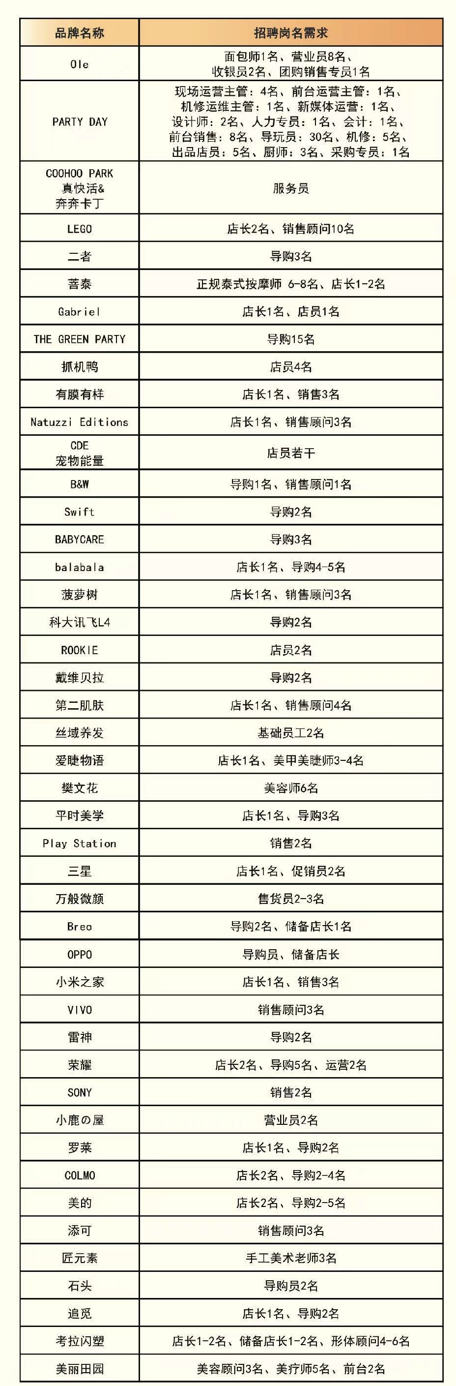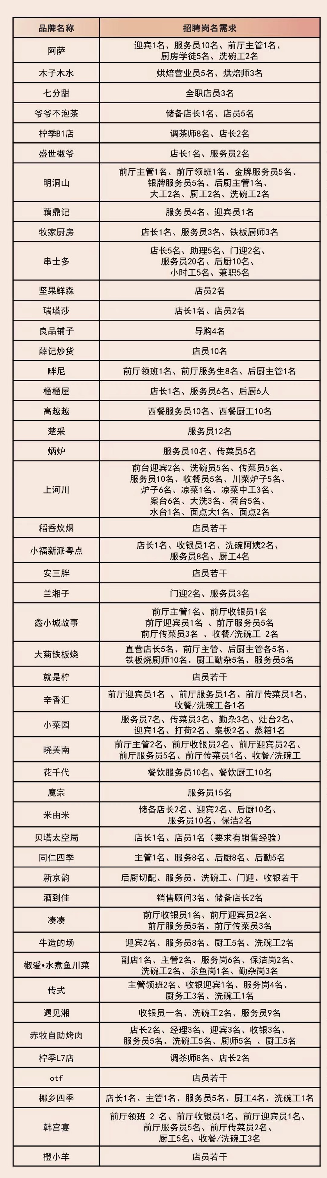 据悉,此次招聘会将于4月14日上午10时,在三角路地铁站C出口的武昌万象城举行,涉及超市、餐饮、宠物服务、生活美容、3C、时尚、休闲生活等武昌万象城多领域板块商户。Ole’精品超市、美的、三星、真快活、良品铺子、小米、SONY、美丽田园、明洞山、赤牧自助烤肉、凑凑等知名品牌将提供店长、导购、销售、美容顾问、烘焙师、后厨主管等多种岗位,总数超2000个。