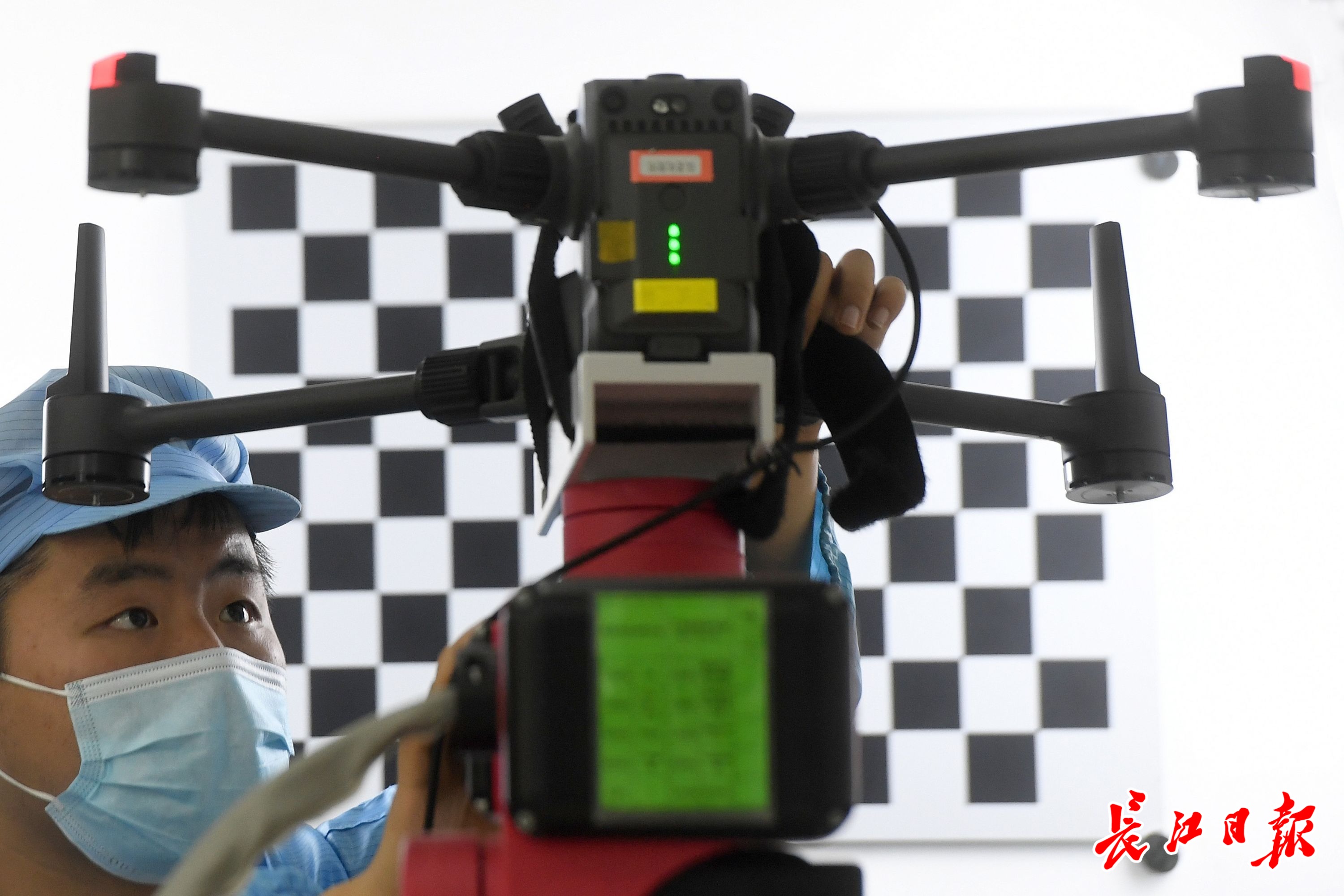普宙科技无人机生产区,员工对即将出厂的S400专业四旋翼无人机进行视觉标定校准。 记者周超 摄