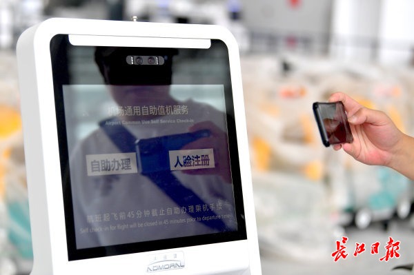 “自助值机设备拥有人脸识别功能,相较于人工值机速度更快。”空港地服公司国内客运值机主任袁芳现场给记者演示,点开机器前的自助值机服务,分别显示“自助办理”和“人脸注册”两个按钮。