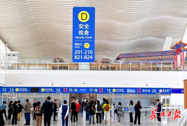 长江日报大武汉客户端4月12日讯 武汉天河机场T2航站楼将于4月15日重新启用。12日上午,长江日报记者抢鲜进入T2航站楼内进行实地探访,一分钟自助值机,两分钟自助安检,航站楼内智慧化、人性化的设计和服务带来不少惊喜。