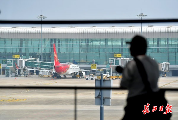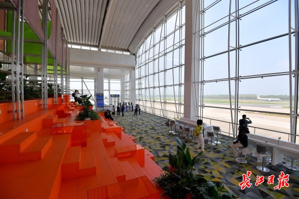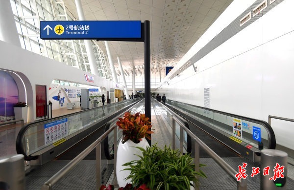 步入T2航站楼廊道,大江大湖大武汉城市文化特色映入眼帘。记者刘斌 摄