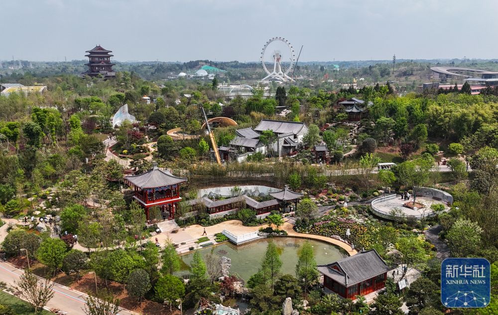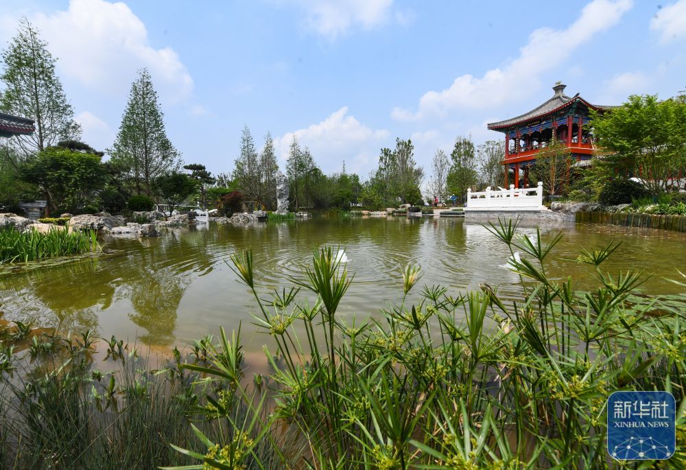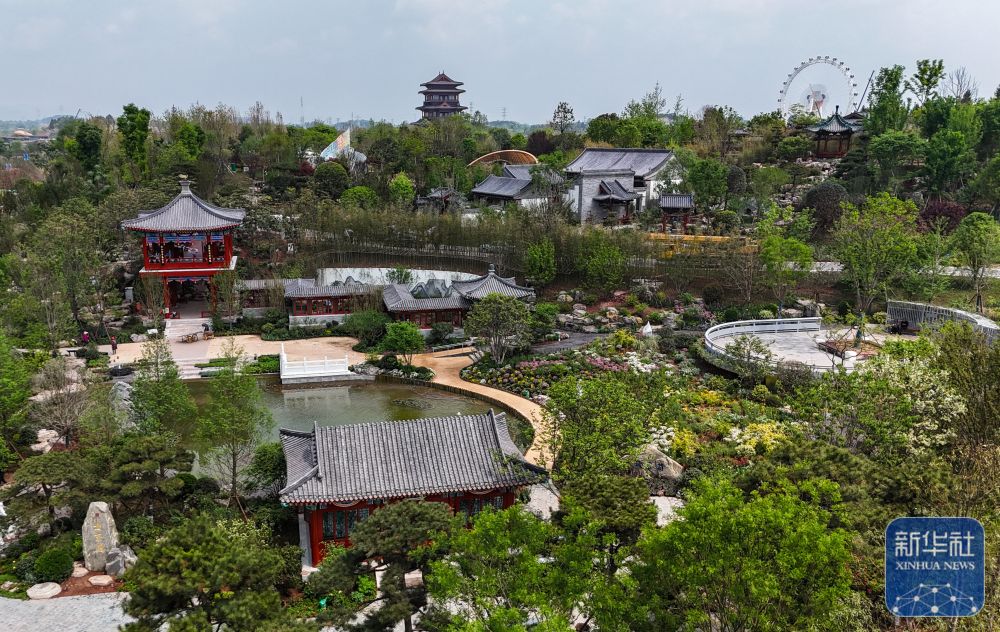 ↑成都世园会主会场郑州园(4月12日摄)。新华社记者 王曦 摄