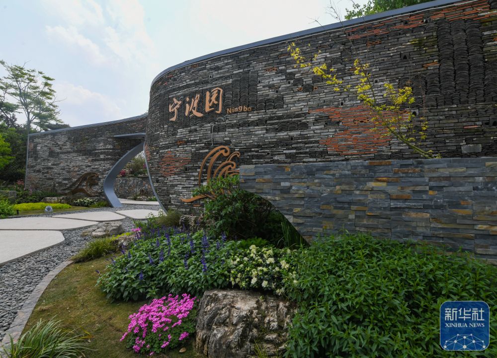 ↑成都世园会主会场里的宁波园(4月12日摄)。新华社记者 王曦 摄