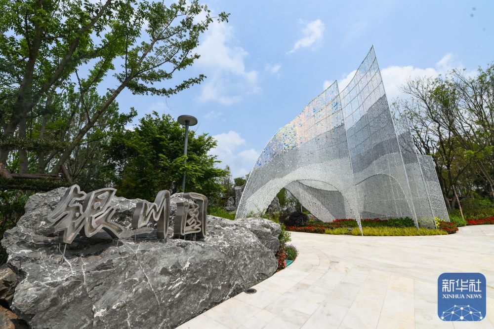↑成都世园会主会场里的银川园(4月12日摄)。新华社记者 王曦 摄
