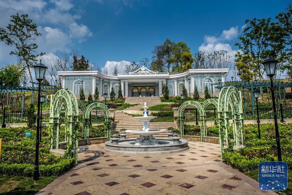 ↑成都世园会主会场里的德国柏林冰山玫瑰园(4月11日摄)。新华社发