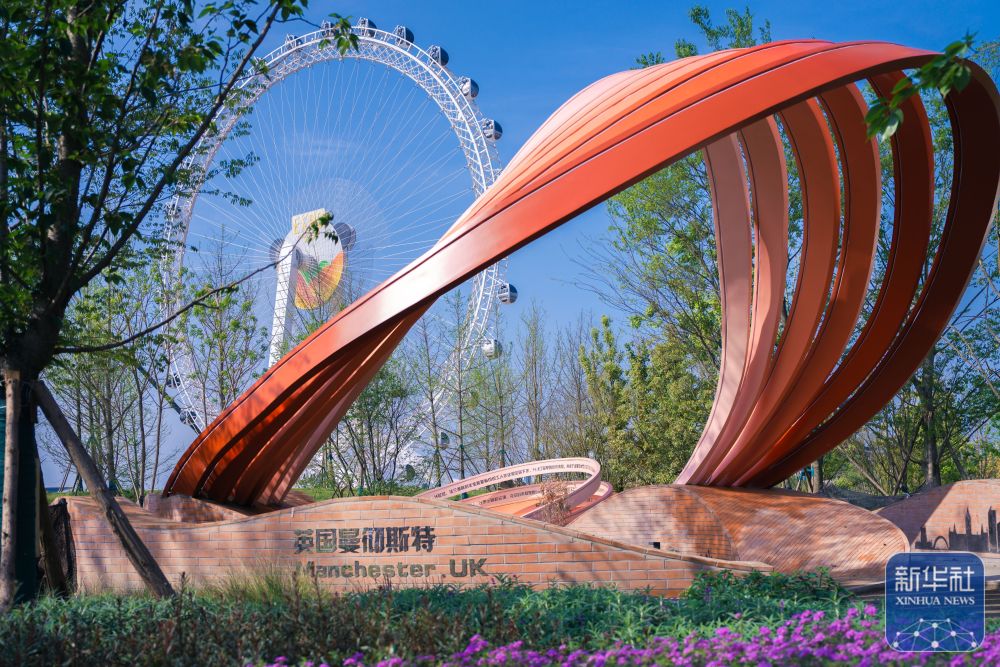 ↑成都世园会主会场里的英国曼彻斯特园(4月2日摄)。新华社发