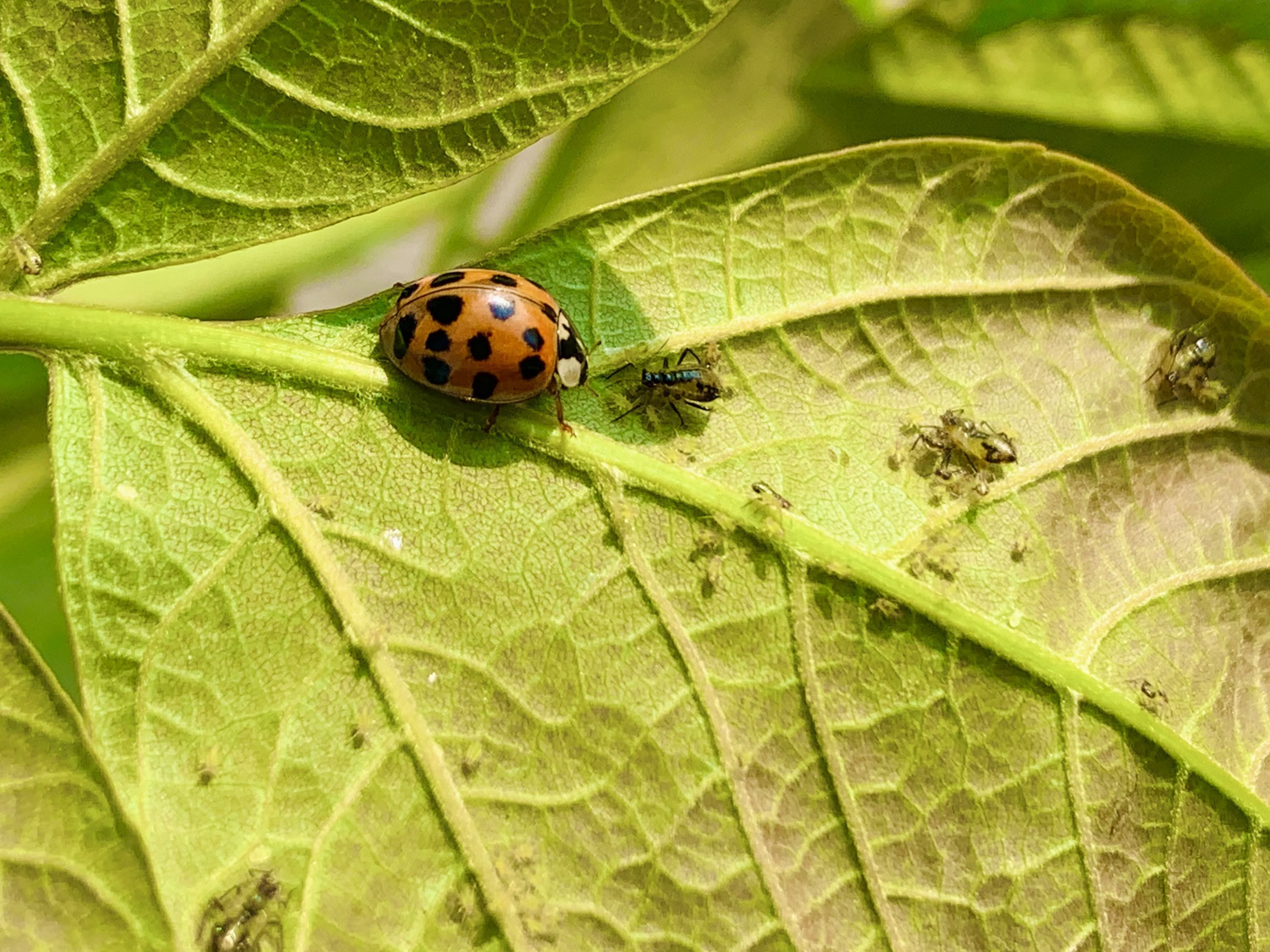 异色瓢虫成虫在捕食蚜虫。冯威 摄(资料图片)