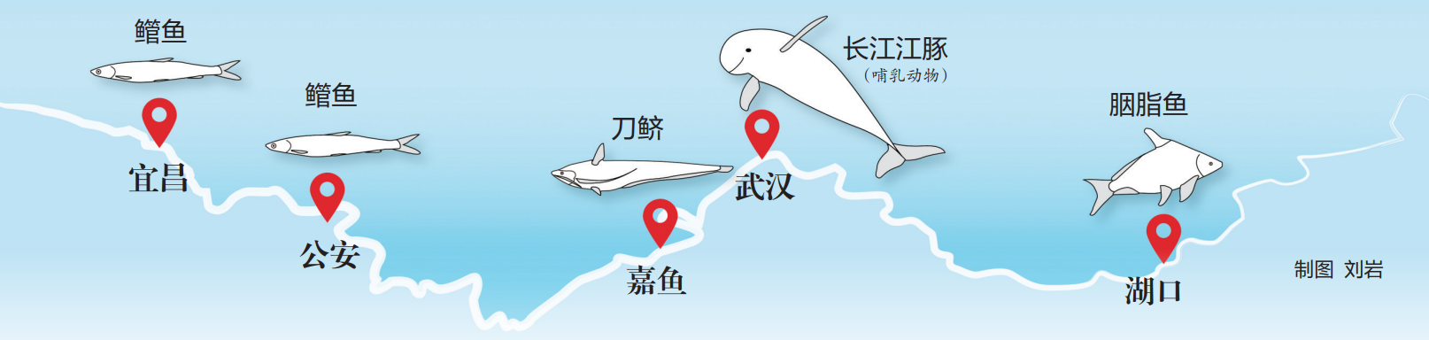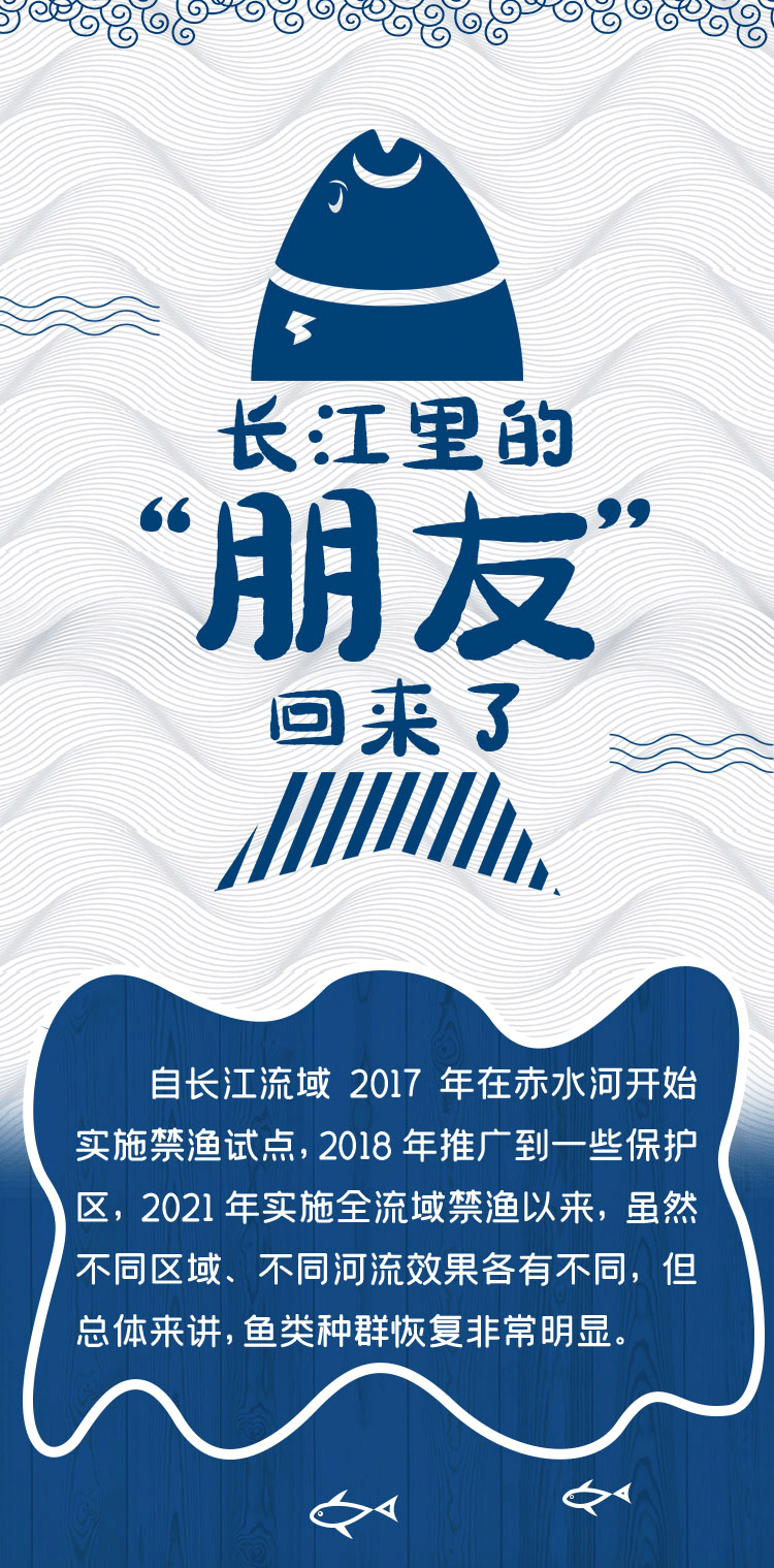 刘焕章介绍,全面实施长江全流域禁渔以来,鱼类种群恢复非常明显。近乎绝迹而又再现的以鳤鱼为代表。近两年,在长江干流宜昌江段、公安江段都采集到多尾鳤鱼,而在鄱阳湖都昌松门山水域也发现已经消失10年之久鳤鱼的活体。鳤鱼是长江顶级掠食者,位于长江生态系统食物链顶端,在20世纪80年代以前都是重要经济鱼类。由于过度捕捞等原因,鳤鱼资源严重衰退,有一段时间几乎灭绝,2016年被列入《中国脊椎动物红色名录》。