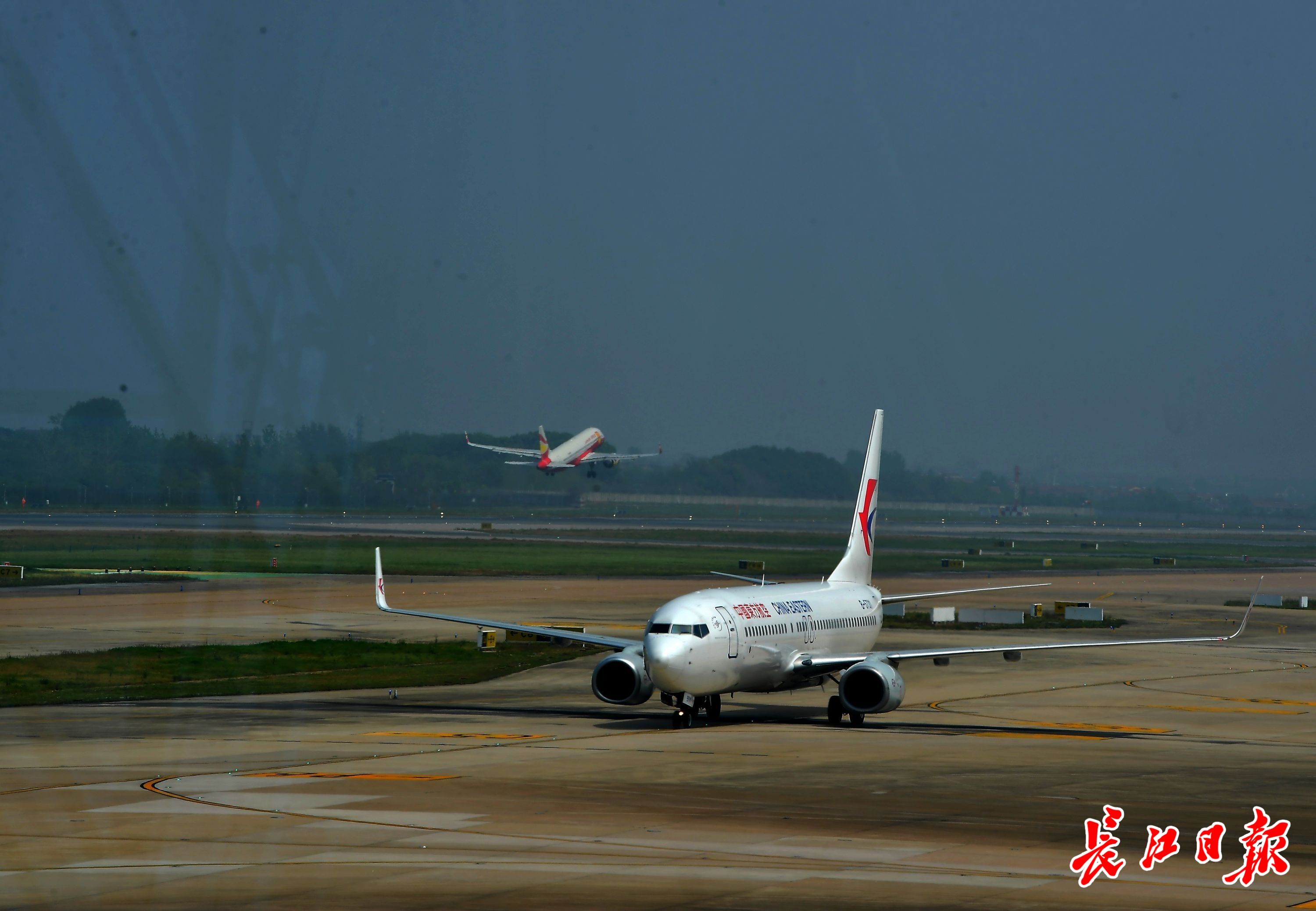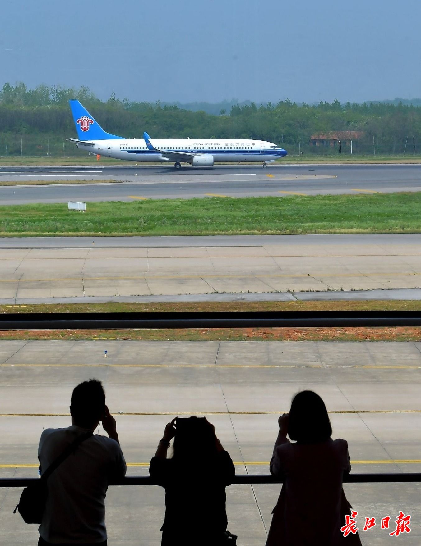 武汉天河机场T2航站楼观景台吸引旅客拍照留念。记者刘斌 摄