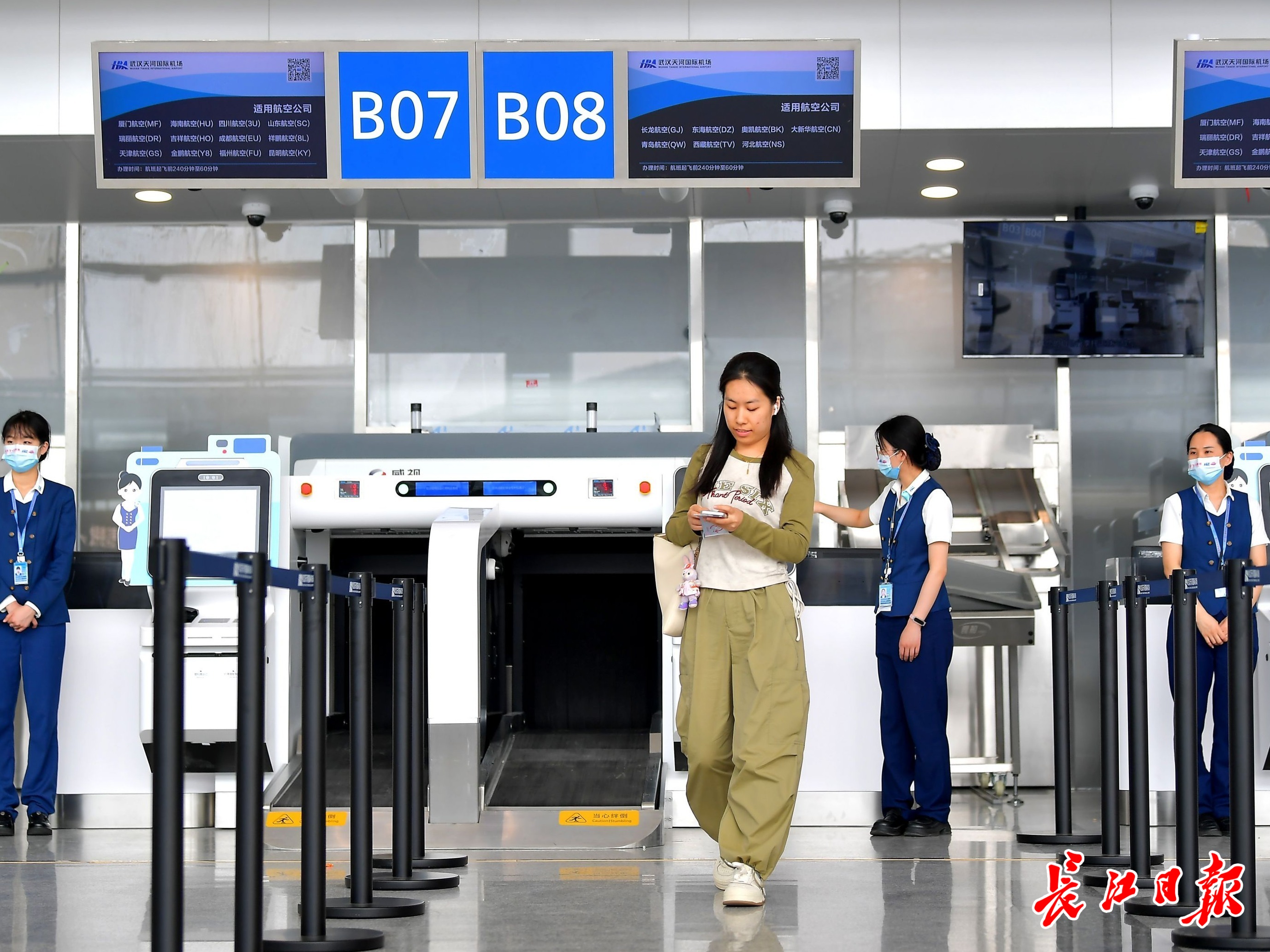 天河机场T2航站楼15日正式启用,“人包绑定”安检智慧系统让旅客轻松无忧。长江日报记者刘斌 摄