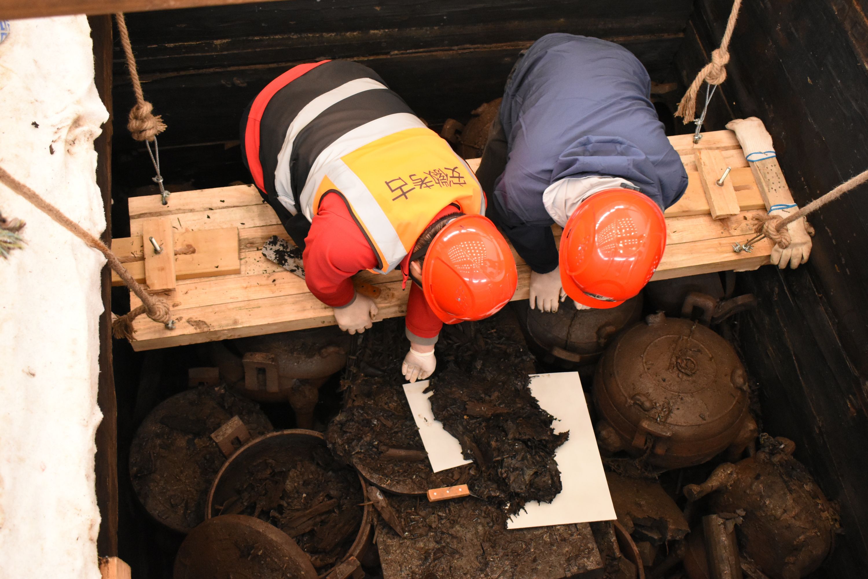 考古工作人员提取脆弱文物。