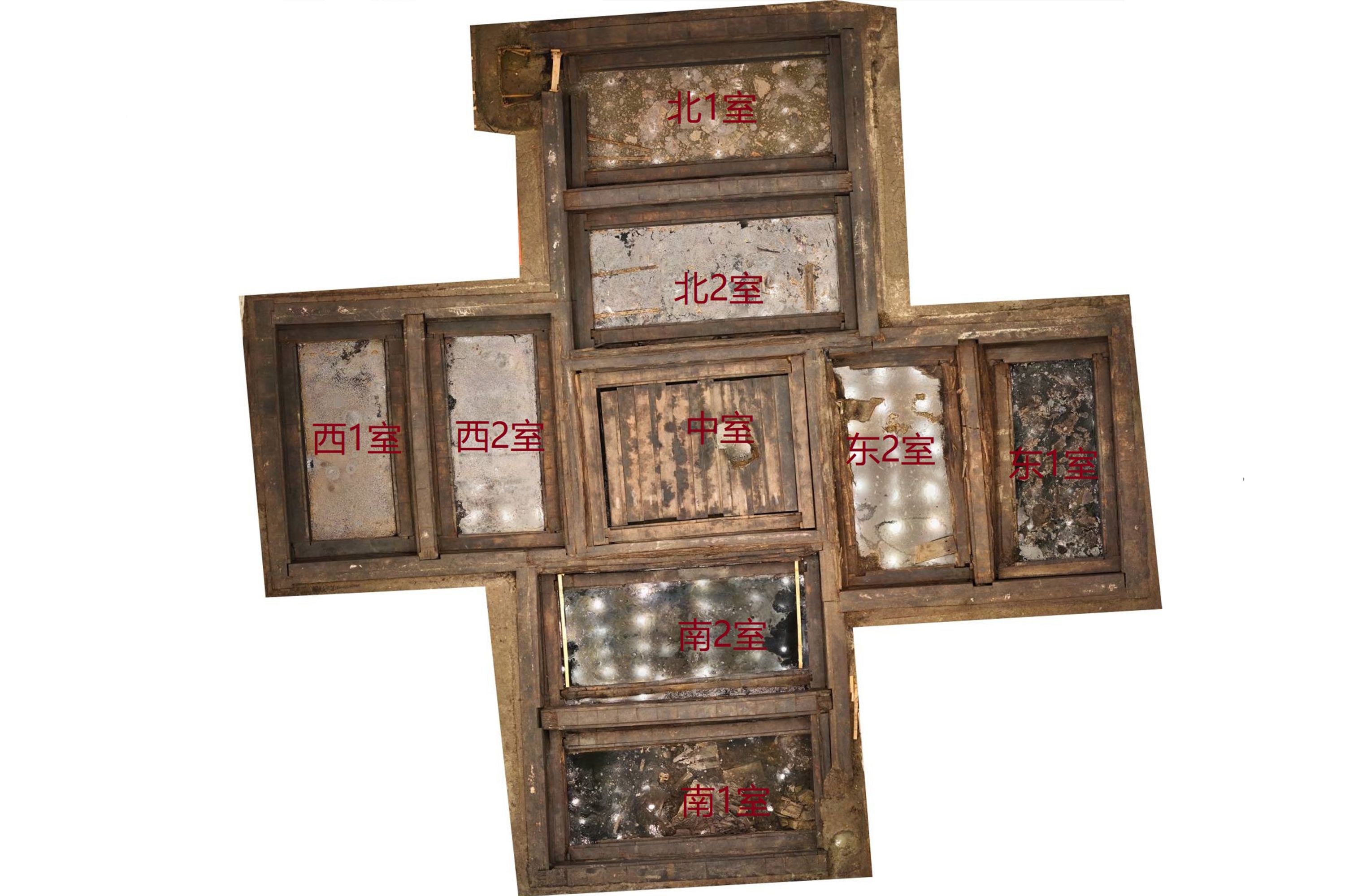 主墓周边盖板揭取后,木椁室布局。