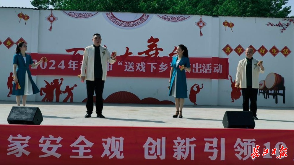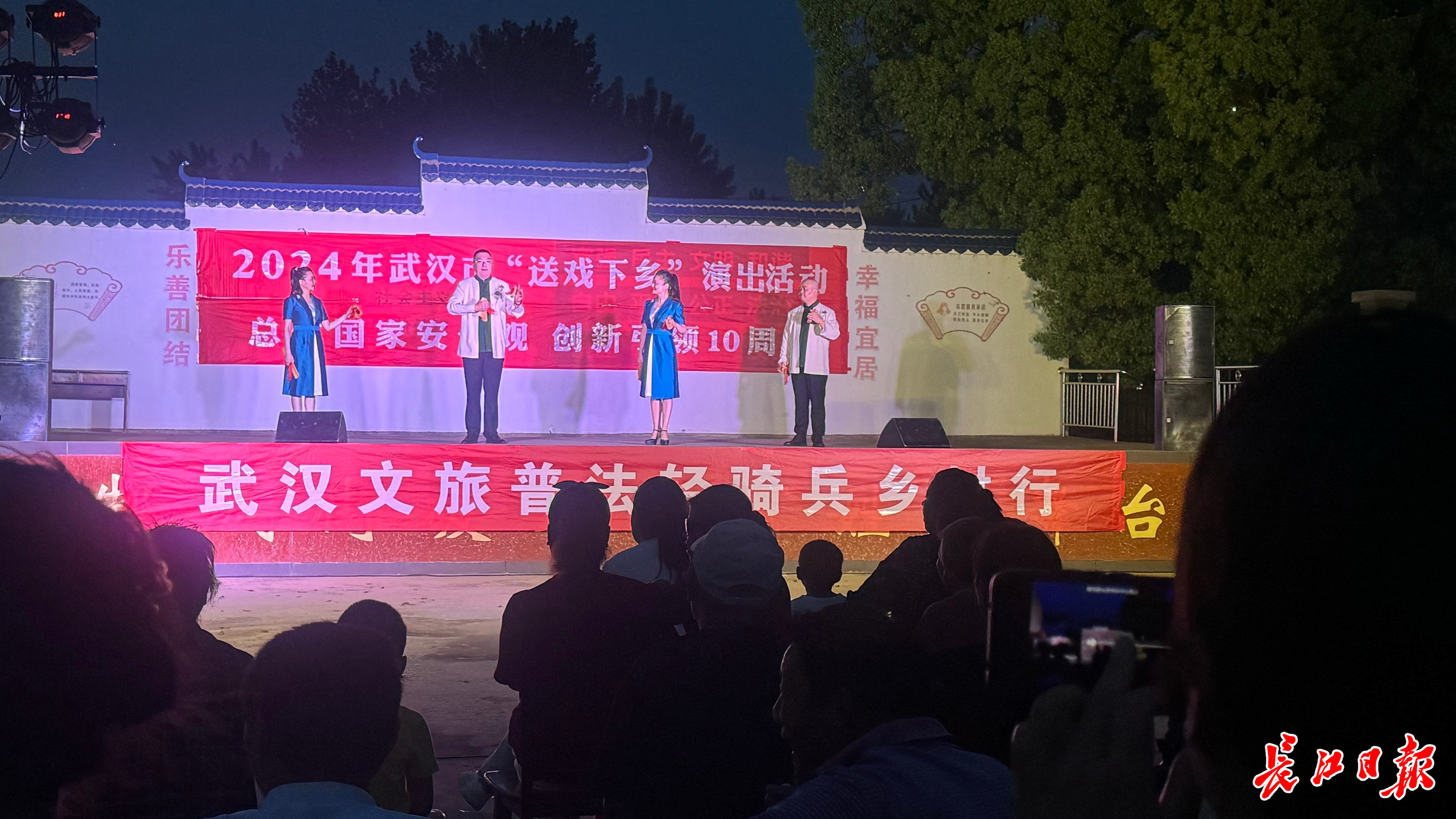 4月15日晚7时,“武汉文旅普法轻骑兵乡村行”上演精彩的法治文艺节目。