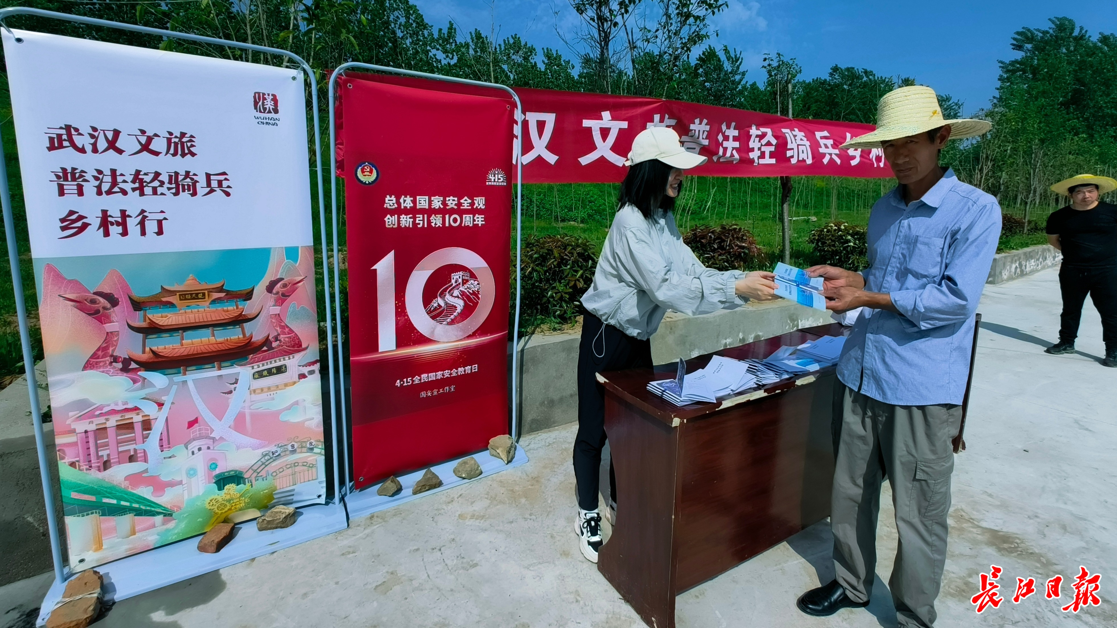 长江日报大武汉客户端4月16日讯 4月15日,正值第九个全民国家安全教育日。为强化全民国家安全意识,维护国家安全,当日,武汉市文化和旅游局深入新洲区,开启“武汉文旅普法轻骑兵乡村行”主题宣传活动,旨在进一步提升乡村居民群众的法律素养,增进居民知法、懂法、守法、用法的法治观念,使法治精神深入人心,融入村民的日常生活。