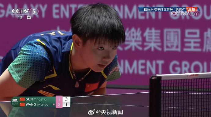 今晚(4月21日),2024澳门国际乒联世界杯女单决赛,孙颖莎在大比分1-3落后的情况下上演大逆转,最终以4-3战胜王曼昱,获得冠军。7局比分为:8-11,5-11,11-4,5-11,11-8,11-5,11-9。