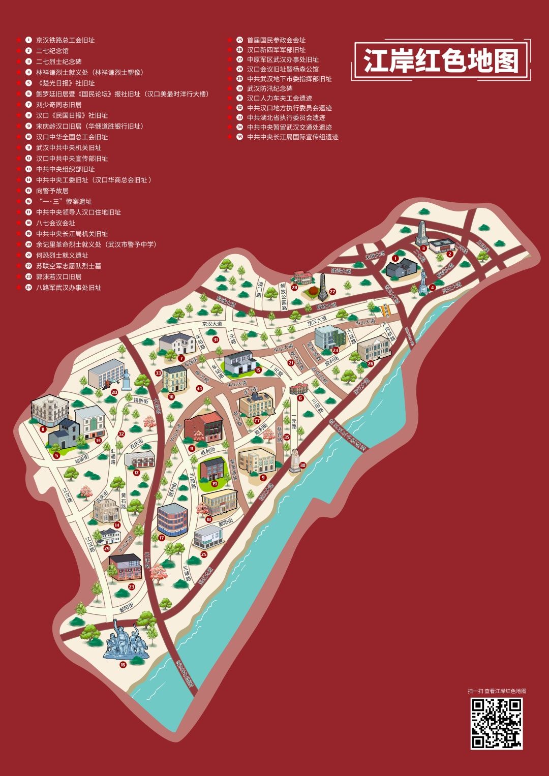 为了庆祝建党100周年,江岸区还整合辖区资源,发挥区内历史人文及红色文化资源丰富的优势,策划了两条红色旅游线路。