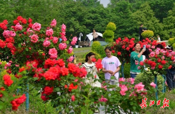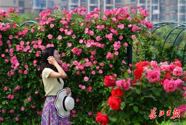 据了解,该月季园建设面积超11万平方米,是目前武汉市最大的月季专类花园,通过规则式、自然式等不同配置形式设置国风月季、花环月季和欧式月季三大主题场景,还搭配杜鹃、鸢尾、黄金菊、络石、林荫鼠尾草等数十种花卉植物,形成集户外休闲、月季花卉展示、花卉销售等于一体的城市花园。