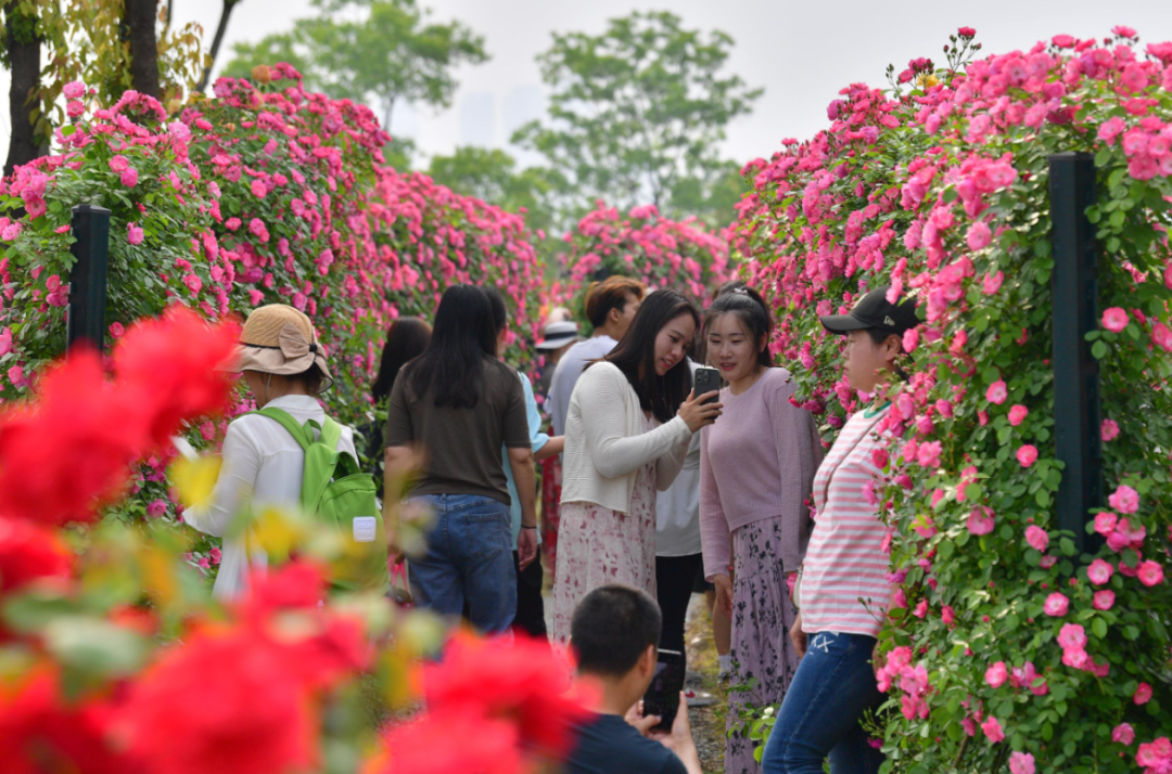● 武汉市金银湖月季花园里100余种月季灿烂绽放,形成一道道花廊和一片片花海,吸引众多市民、游客前来赏玩。详见>>>