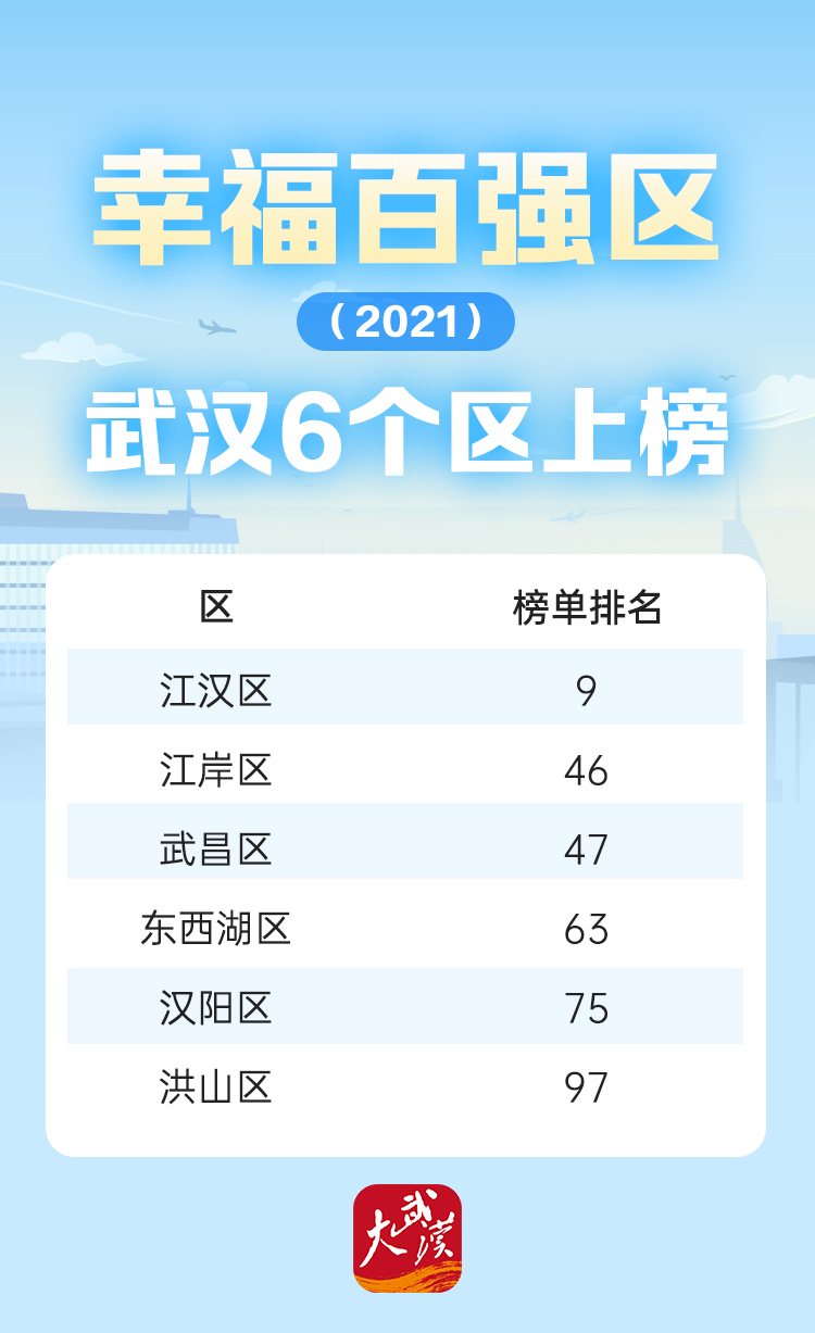 武汉6个区上榜全国幸福百强区