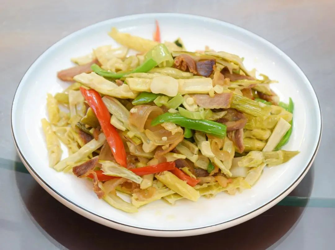 粉皮焖土鸡,选自农户家散养的土鸡,肉质紧实。最受欢迎的反倒成了那被汤汁浸润透彻的粉皮,美味得令人忍不住再加一份。野生珍珠菜炒土鸡蛋、凉拌苦菜,皆是大自然的风味。栖身深山幽静处,却仍能寻得山野美味,度过这美好时光。