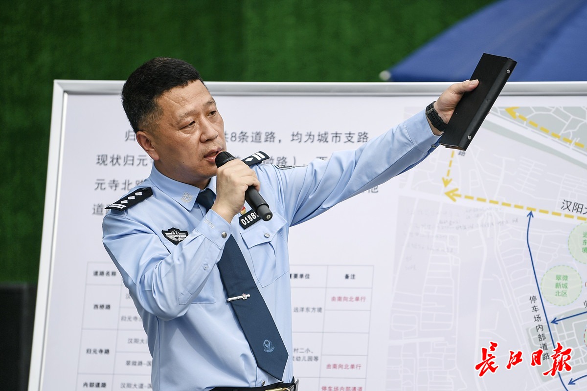 汉阳区交通大队揭峰副大队长在介绍情况。长江日报记者史伟 摄