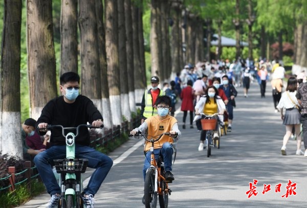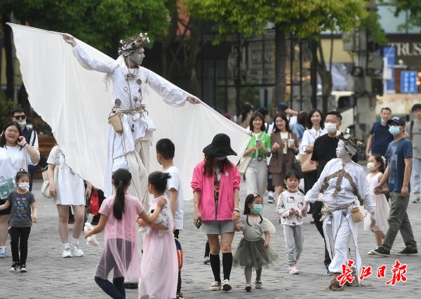 长江日报5月1日讯 “五一”假期首日,阳光明媚,随处可见利用假期出来休闲的市民。中山公园里,人们在草坪上搭起帐篷,在树阴下品茶,孩子们在游乐场尽情玩耍;西北湖湿地公园里,波光粼粼,鸟语花香,附近居民纷纷来此漫步,摄影爱好者拿着相机记录下美好时光;东湖绿道上,家长带着孩子在这里骑行,游客在湖畔游览观光;武汉天地的广场上,来自中外的艺术家带来精彩的表演,以前卫的舞蹈形式——将高跷与街舞融合,让大家在一睹高难度表演的同时,还能欣赏时尚的舞蹈;武汉群星城商场里,身穿唐服的少儿模特们带来《唐宫盛宴》国风走秀,吸引不少逛街购物的市民驻足欣赏。