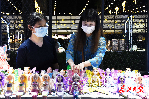 长江日报5月1日讯 5月1日,长江日报记者在江汉路循礼门路口看到,即使是晚上9点,逛街的市民和游客依然热情不减,沿街美食店和时装店的生意都颇为火爆,武汉天地举办的各种创意市集也让武汉市民和游客近距离感受武汉原创魅力。