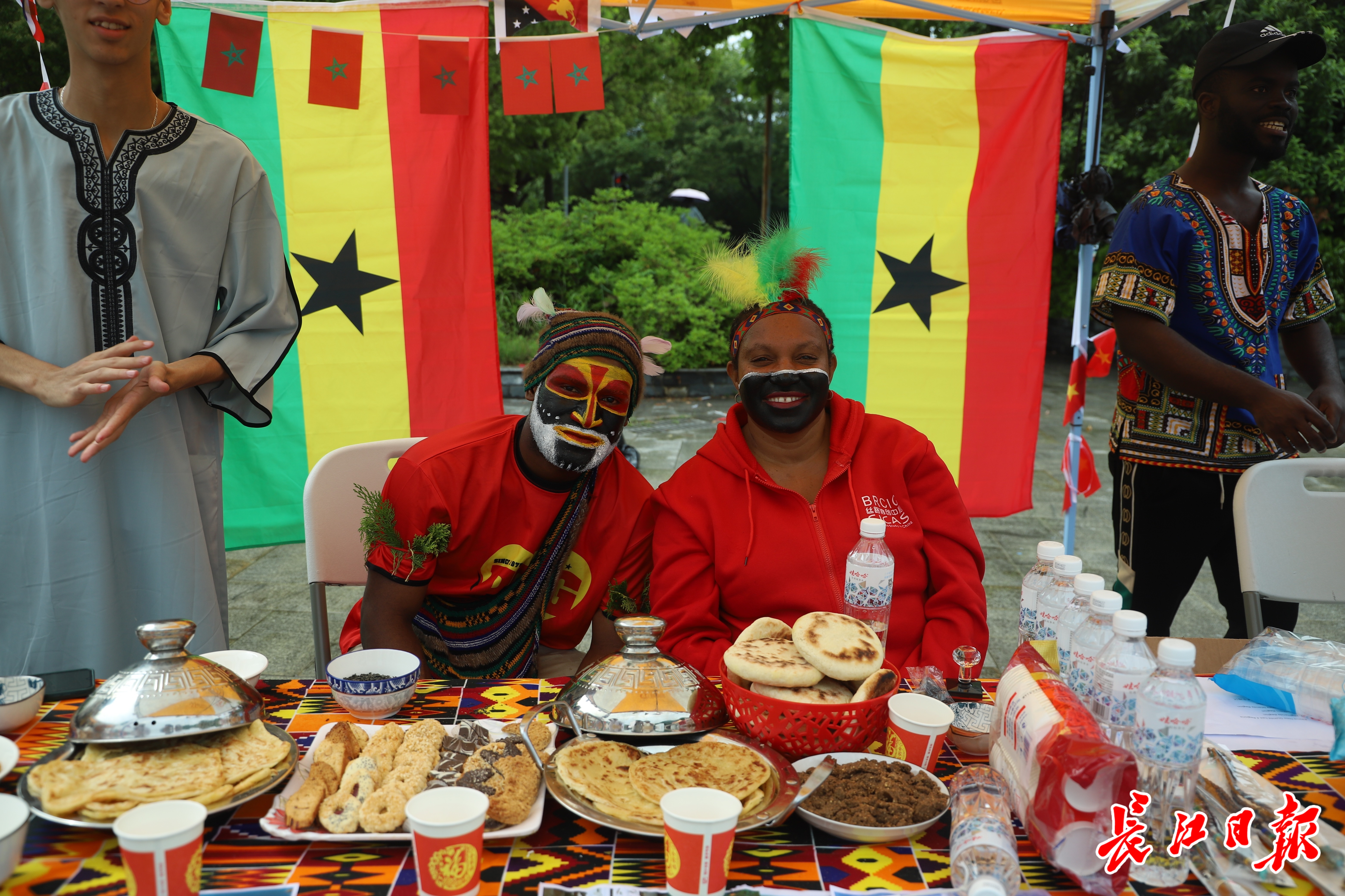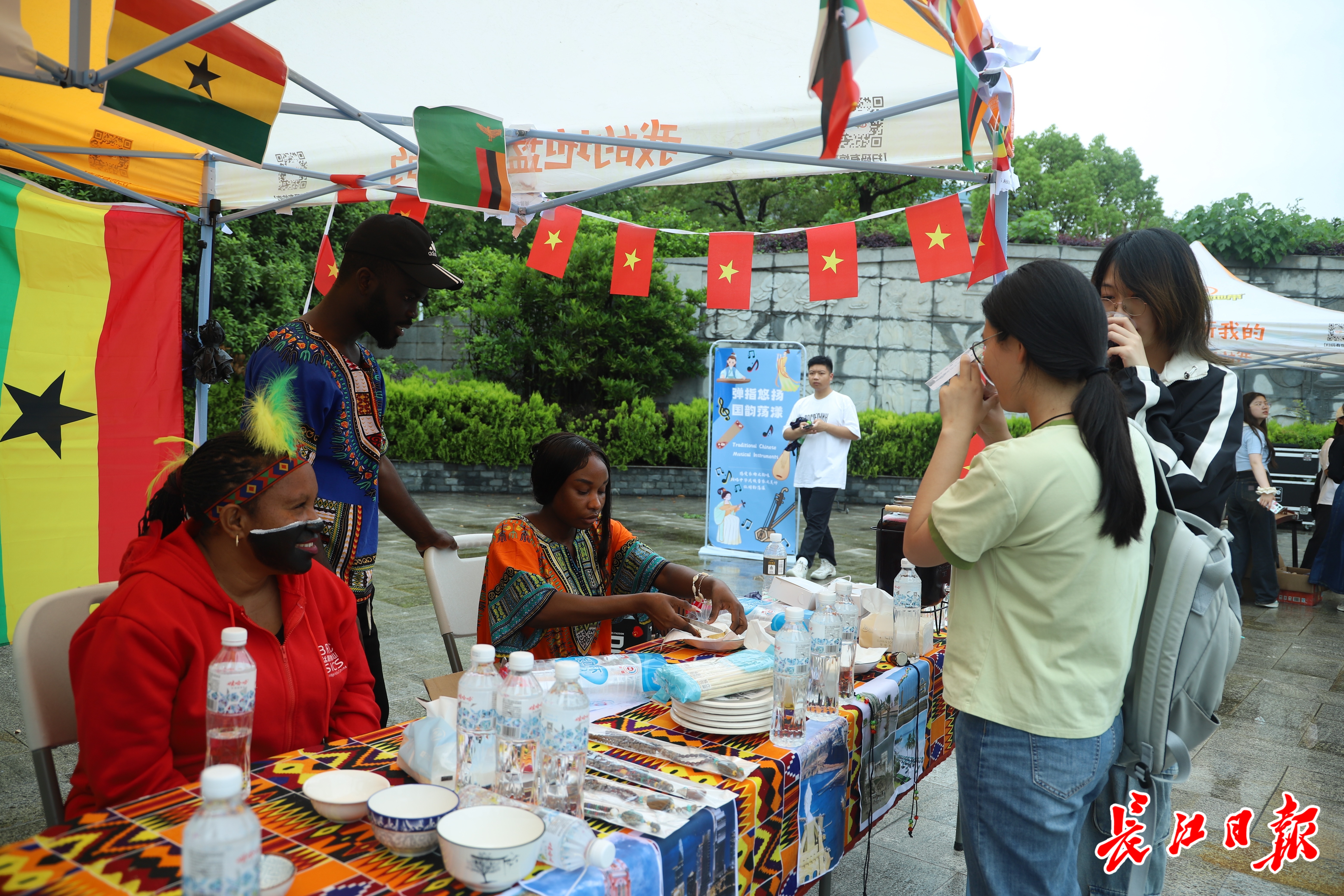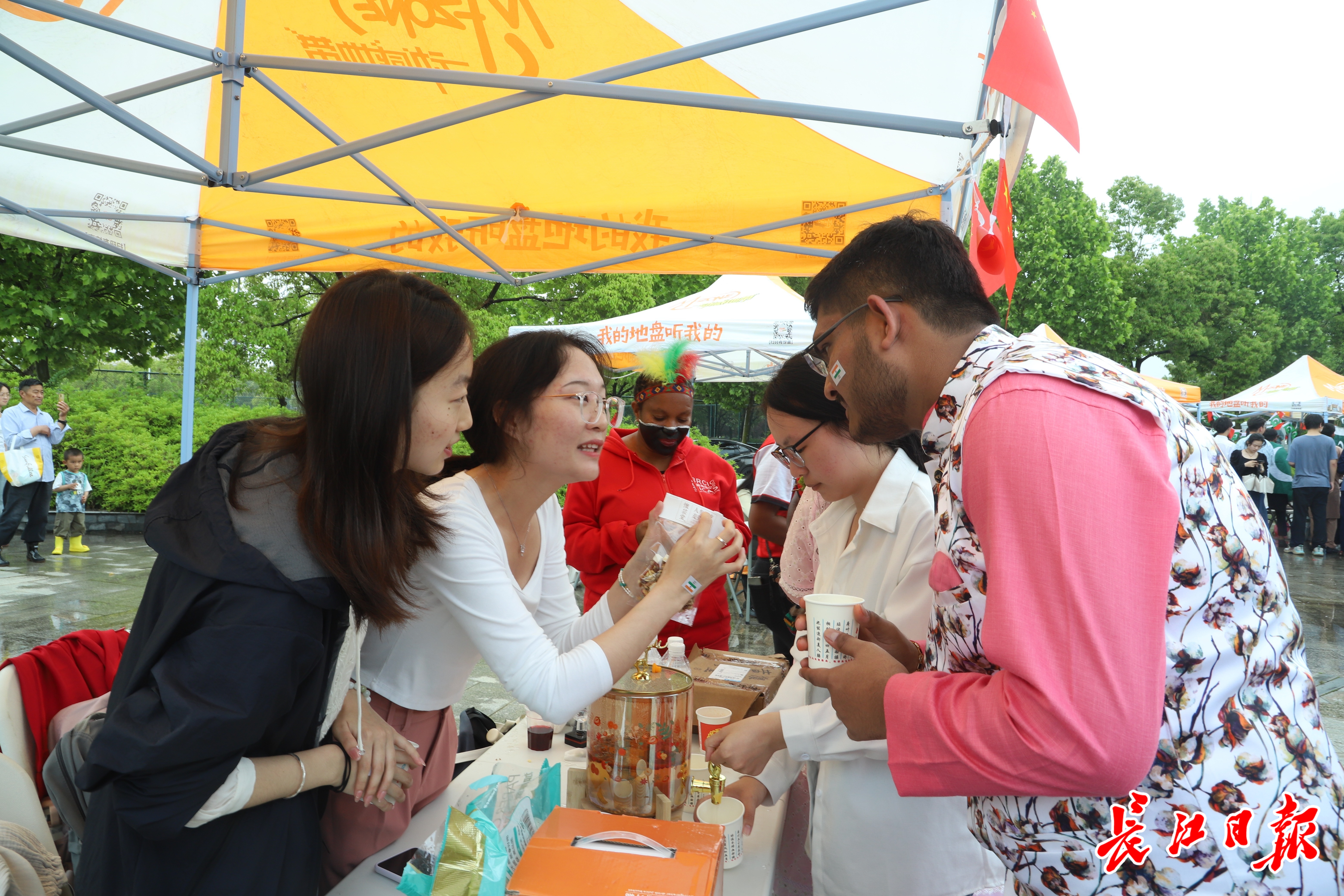 在巴基斯坦文化、印度文化、亚非文化展区,外国留学生们身着各自国家的民族服饰,带来了亲手制作的特色饮品和美食。他们热情地邀请现场观众品尝,摊位前人头攒动,中外学生在品尝美食的同时,也交流着各自的文化与故事。