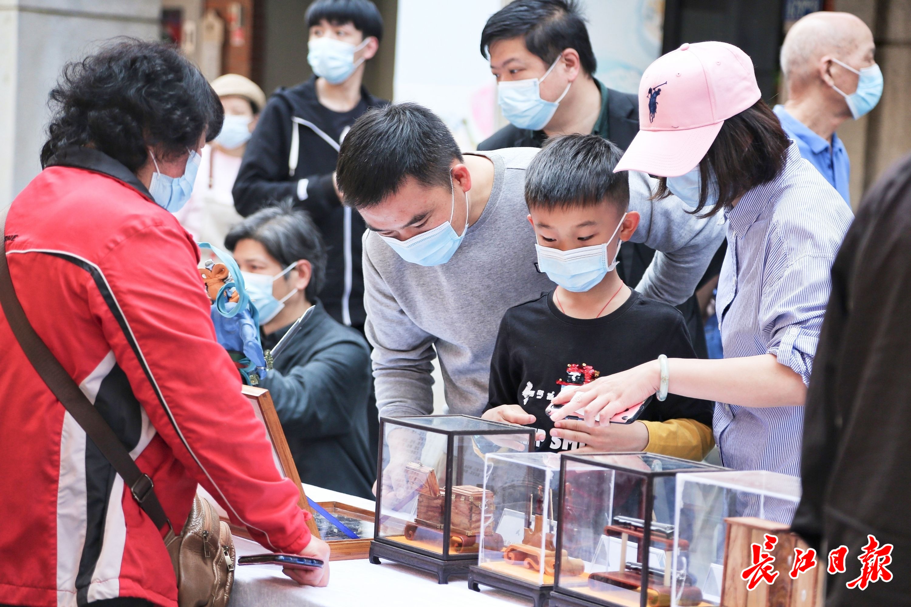 吉庆街非遗作品吸引游客驻足。长江日报记者陈俞 摄