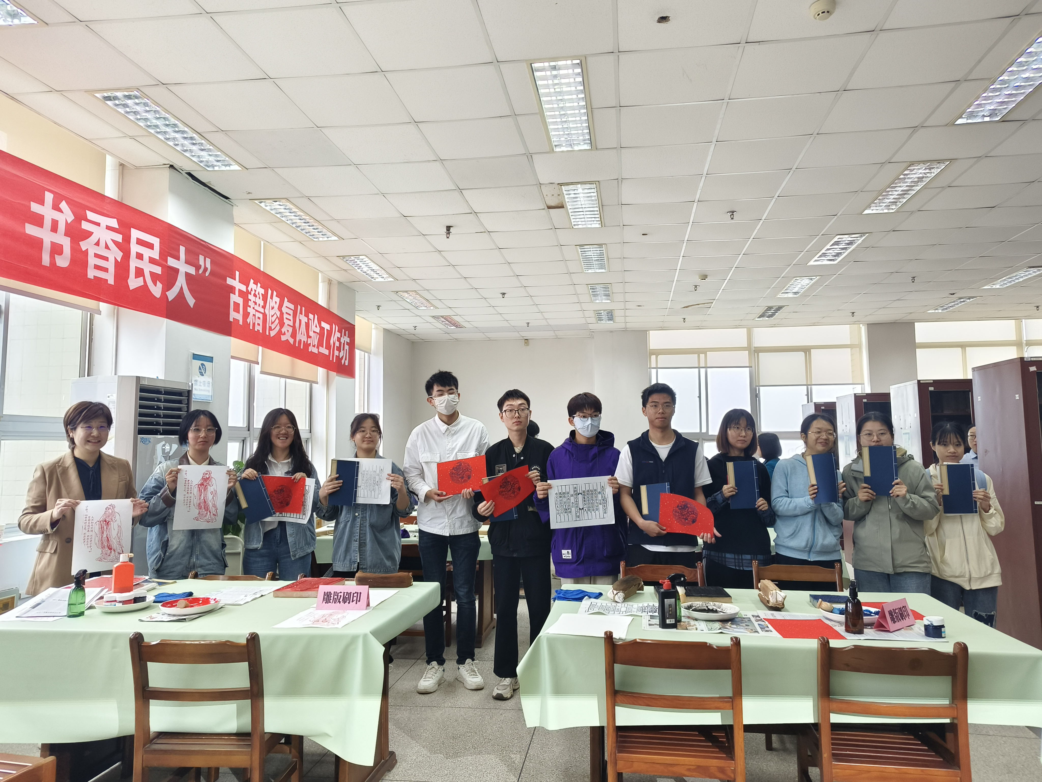 在雕版刷印活动中,同学们亲手体验了刷墨、上纸、上墨、锤拓、揭拓的流程,将文字和图像实现了从版到纸的转化。盛兰研究员表示:“我们希望同学们通过亲手做一本书、亲身参与雕版刷印活动来拉近他们与古籍、与传统文化之间的距离,更希望古籍保护的理念可以走进同学们的心中,让我们的古籍保护工作得到更多的重视和认可。”