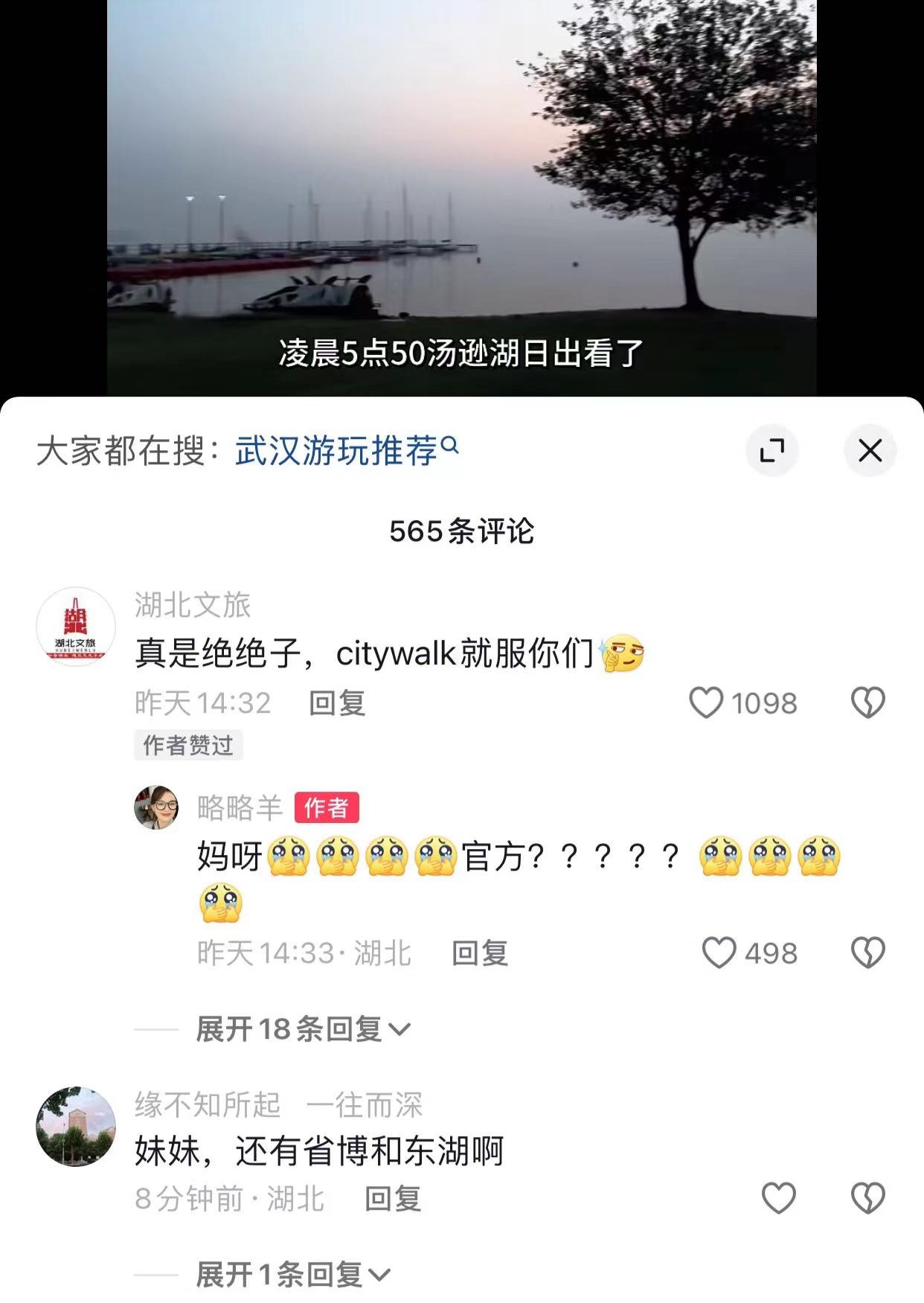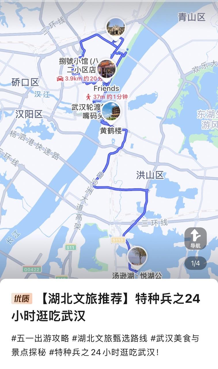长江日报大武汉客户端5月1日讯(记者张珺)凌晨5时出发,汤逊湖看日出,徒步黄鹤楼,过早老字号……4月30日,一条“女大学生21小时武汉暴走6万步,极限逛吃20个景点”的视频在网上走红,在社交某平台点赞数万,相关话题也登上微博同城热搜。不少网友留言“求”同款武汉逛吃攻略,现在攻略有了。
